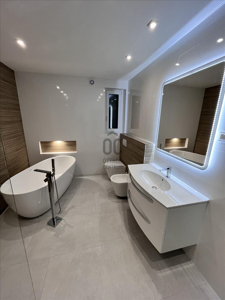 5 személyes wellis jakuzzi, egyedi konyha aeg gépekkel, kültéri kamerarendszer, ujjlenyomatos beléptető, videós kaputelefon, parkosított kert, öntözőrendszer, alumínium redőnyök elektromos távirányítással, beltéren és kültéren lámpatestek, a fürdők burkolva és szaniterekkel ellátva