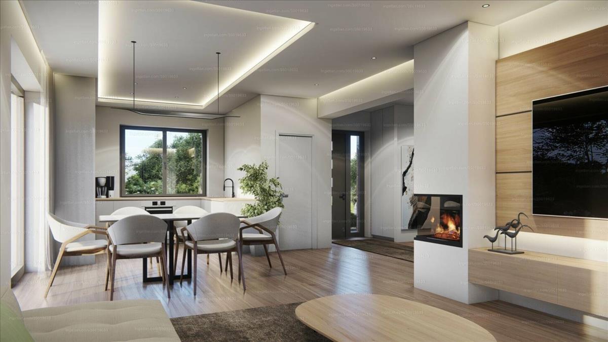 A földszint nettó 102, 1 m² + 40 m² terasz, napfényes és funkcionális elrendezésű, a nappali közvetlen teraszkapcsolata és a kertre néző hálószoba a kényelmet és a természetközeli életérzést szolgálják, míg a garázs és bőséges tároló helyek a mindennapok praktikusságát biztosítják.