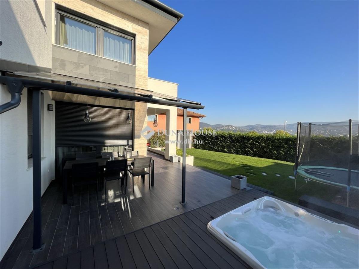 Tükörhegyen eladó 2019-ben épült, panorámás, nappali + 4 hálószobás ikerfél, ami teljesen elválasztott a szomszédtól és csak a garázsnál van közös fal. 2019-Ben jó minőségben megépített 2 szintes épület, amiben amerikai konyhás nappali, 4 szoba és 2 fürdőszoba található, illetve hatalmas teraszok! Ház alapterülete 150nm + tartozik hozzá összesen 80nm terasz. Önálló garázs és kültéren 2 autó részére van további parkolási lehetőség. Minden helyiség klímával felszerelt. Az ingatlan teljesen felszerelt! RiasztórendszerKamerarendszerElektromos kapu stb. . Elektromos redőnyök és szúnyoghálóKlíma az összes helyiségbenÖntözőrendszerTeraszba épített jakuzziTelek 500nm