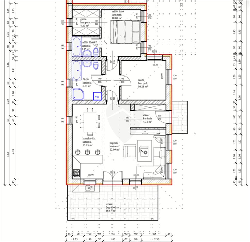 - Burkolatok, szaniterek, szerelvények saját igény szerint választhatóak még