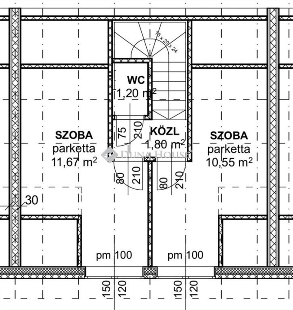 A lakás két szintes, tetőtér-beépítéses, korszerű műszaki tartalommal rendelkező ingatlan, saját tulajdonú telekrésszel.