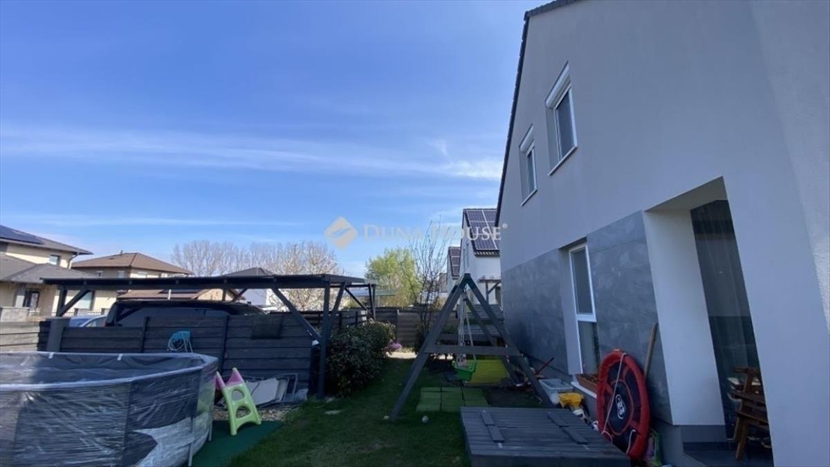 Üllőn, a közkedvelt Sportliget lakóparkban igényes állapotú ikerház eladó! Üllő egyik legkedveltebb, frekventált ám mégis nyugodt részén kínálunk eladásra egy nagyon jó állapotú, belső kétszintes ikerházat, rendezett, barátságos környezetben. Az 90 m2-es ingatlan átgondolt elrendezésű, világos terekkel rendelkezik. a lakás szép burkolatokkal, gondosan karbantartott állapotban várja új tulajdonosát. a földszinten tágas nappali, konyha, előtér, külön wc, valamint egy praktikus lépcső alatti tárolóhelyiség található. a konyhában a gyönyörű állapotú beépített konyhabútor a házigazda keze munkáját dícséri. Az emeleten három külön nyíló szoba, közlekedő és fürdőszoba kapott helyet, amely kényelmes életteret biztosít a teljes család számára. a közlekedőben is jól átgondolt, praktikus beépített szekrények kaptak helyet. a fürdőben kád és zuhanykabin is kényeztetésre csábít. a tégla építésű szigetelt ház műanyag nyílászárókkal felszerelt. Az otthon melegéről korszerű elektromos padlófűtés rendszer gondoskodik, melyet helyiségenkénti hőmérsékletszabályozás tesz még optimálisabbá. Szintenként felszerelésre került egy-egy hűtő-fűtő klíma is, melyek az enyhébb napokon tökéletesen befűthetik a házat, s a nyári melegben kellemes hőmérsékletet varázsolhatnak. a saját kertrész a nappaliból a teraszon át is megközelíthető, a sarokban egy praktikus tároló is helyet kapott. a parkosított udvar kiváló lehetőséget biztosít pihenésre vagy családi kikapcsolódásra. Az ingatlanhoz fedett kocsibeálló is tartozik. a környék csendes, családbarát, ugyanakkor minden fontos szolgáltatás könnyen elérhető. Ideális választás mindazok számára, akik jó állapotú, azonnal költözhető otthont keresnek Üllő egyik legjobb részén. Amennyiben felkeltettem érdeklődését, további információért és megtekintési időpont egyeztetésért keressen bizalommal! a Duna House teljes kínálatával állok rendelkezésére! Ingatlan eladás és vétel teljes körű ügyintézése, megbízható ügyvédi háttér biztosítása, ingyenes ingatlan tanácsadás, teljes körű és gyors bankfüggetlen hitelügyintézés, biztosítás, energetikai tanúsítvány akár hozott ingatlanra is az ország piacvezető ingatlanközvetítő hálózatának támogatásával!