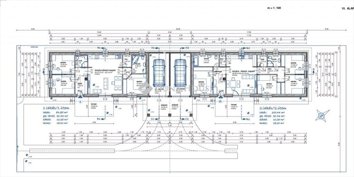 A teljes telek mérete 1000 m², amelyből 158 m² közös használatú kocsibeálló. Ehhez a lakáshoz 325 m² saját telekrész tartozik. Az ingatlan külön helyrajzi számmal rendelkezik majd, társasházi alapító okirattal.