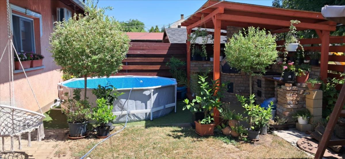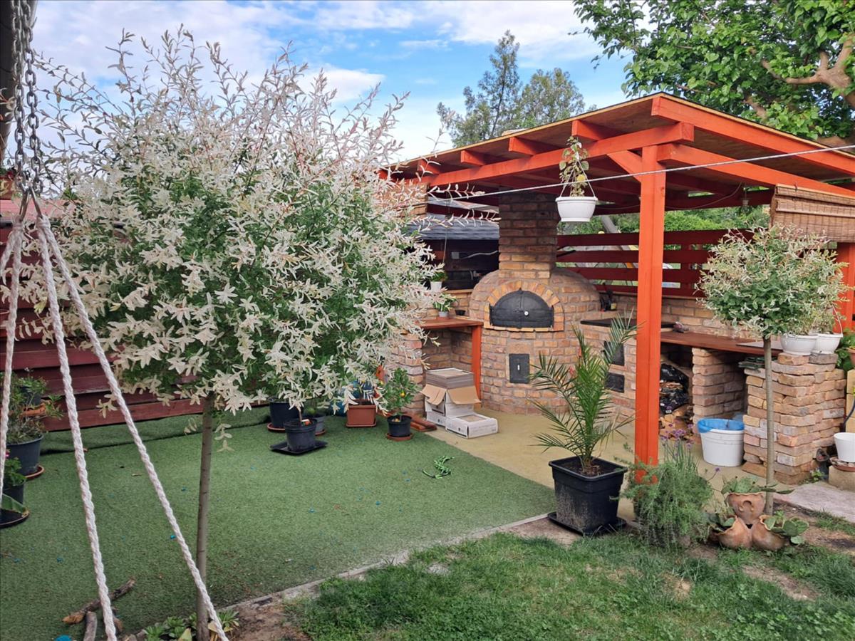 A ház élettere 74 nm. 3 Szoba, amerikai konyhás nappali, fürdő, külön wc lett kialakítva. a konyha és a fürdő 2025-ben teljes átalakításon esett át. a fűtésről gáz cirkó gondoskodik. Minden szobában külön hűtő-fűtő klíma gondoskodik a kényelemről. a tetőtér igény szerint beépíthető. a kertben, ami 250 nm, egy garázs, fedett kiülő, tároló, 2025-ben épített kemence és medencének kialakított rész, található. a garázson kívül még 3 autó parkolására van hely. a növényzet: epres, szeder, málna, fügefa és dísz növényekből áll, amelyek vízellátásáról fúrt kút gondoskodik. Ezen kívül a