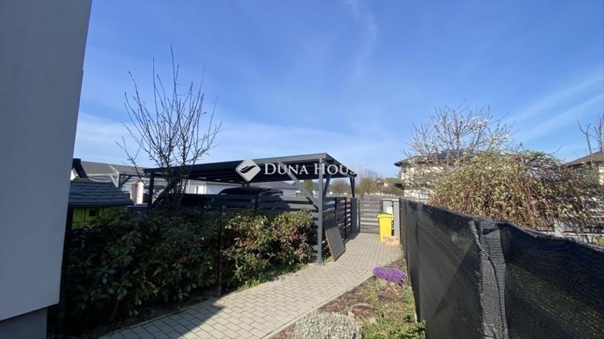 A saját kertrész a nappaliból a teraszon át is megközelíthető, a sarokban egy praktikus tároló is helyet kapott. a parkosított udvar kiváló lehetőséget biztosít pihenésre vagy családi kikapcsolódásra. Az ingatlanhoz fedett kocsibeálló is tartozik.