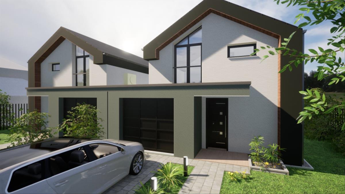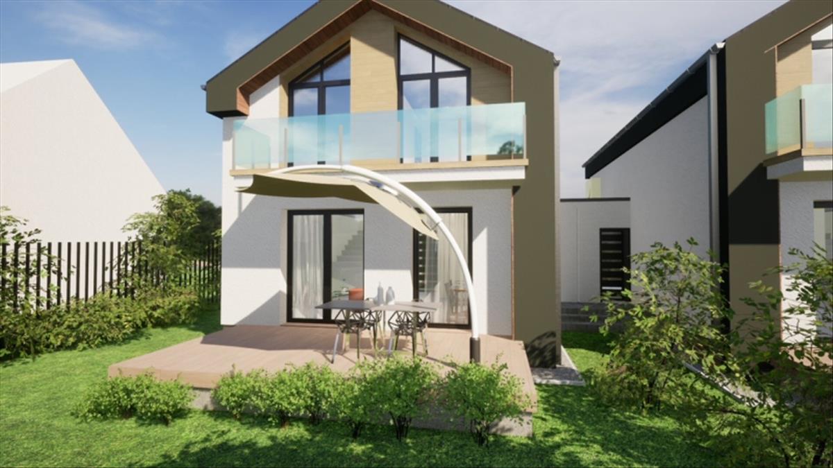 Az ikerházak nettó 110 m2-en nappali + 3 hálószobás, 1 állásos garázs kialakításával lettek