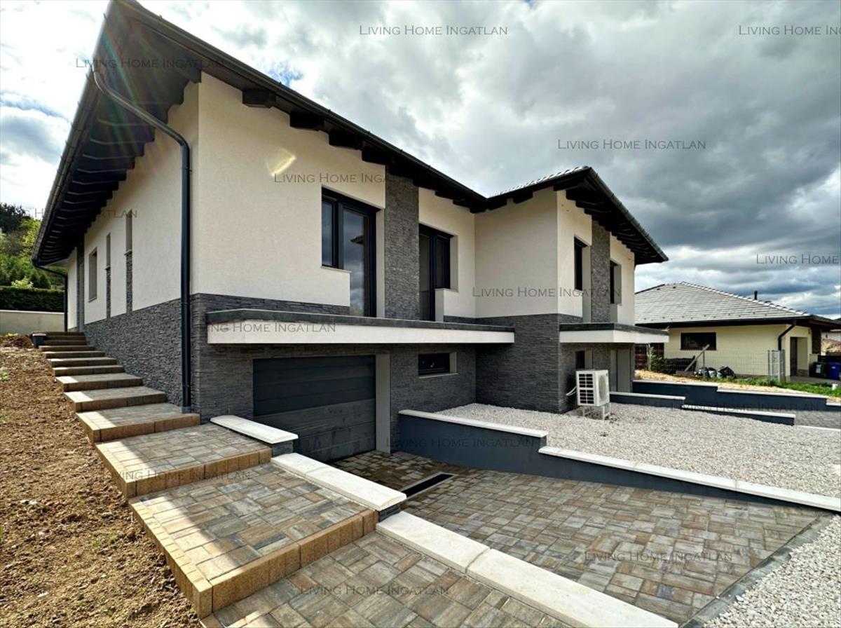 It is 154 sqm, also double, with 434 sqm plot. The owner has started to build both halves of the house on his own. Quality materials, well thought out floor plan, spacious living areas. The garden has been landscaped.