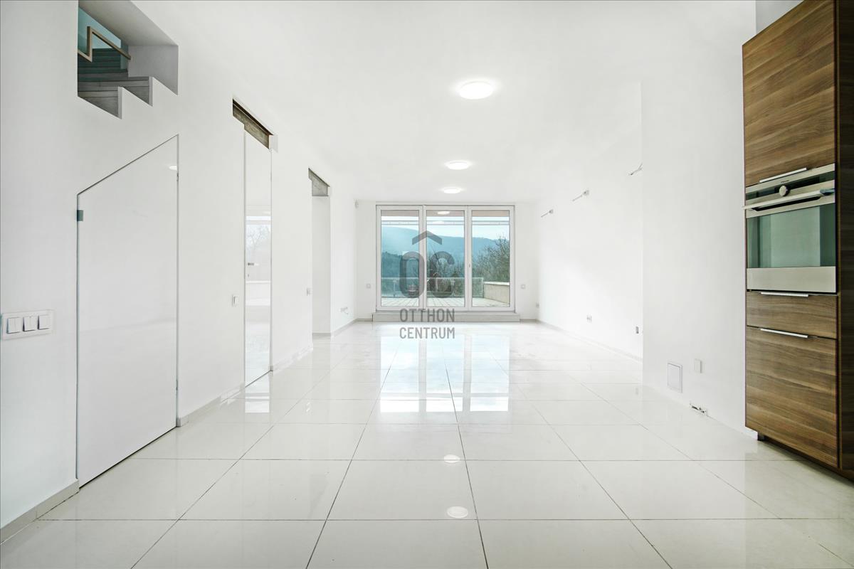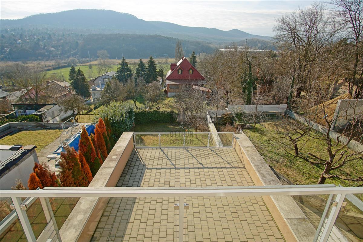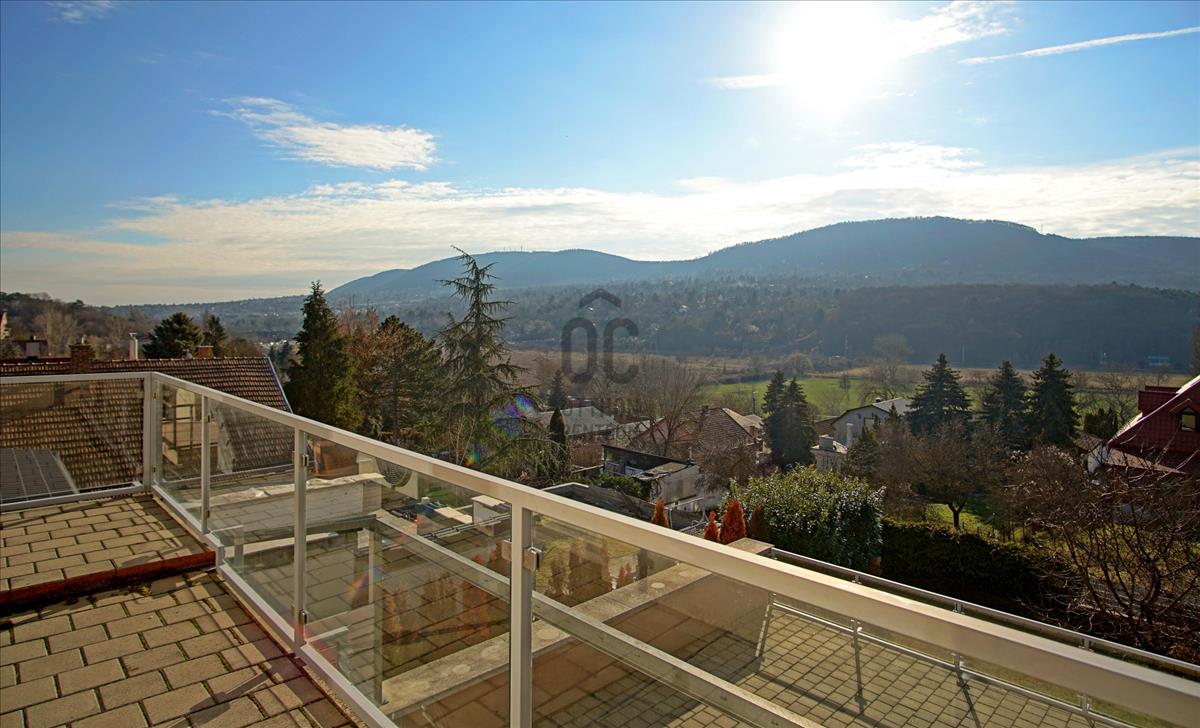 A ház homlokzatáról lenyűgöző kilátás nyílik a Budai-hegyekre, másik oldala pedig egy hatalmas mezőre néz