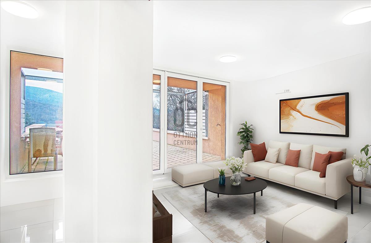 A földszinti lakótér 2 szobás + tartozik hozzá egy terasz