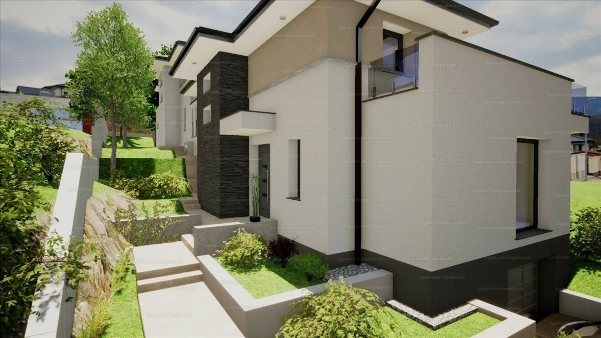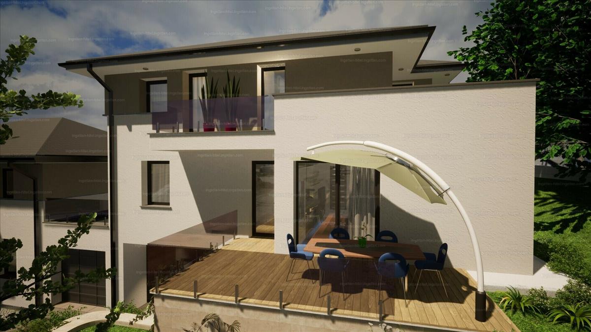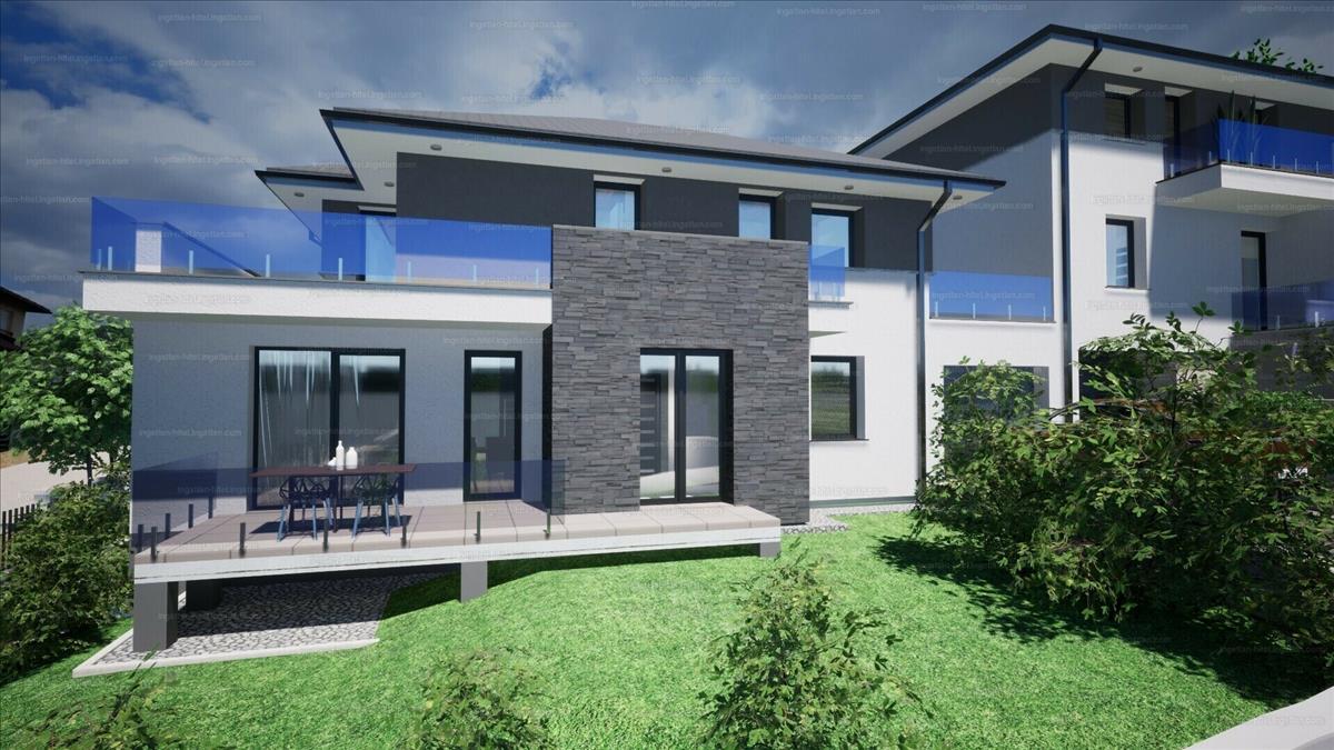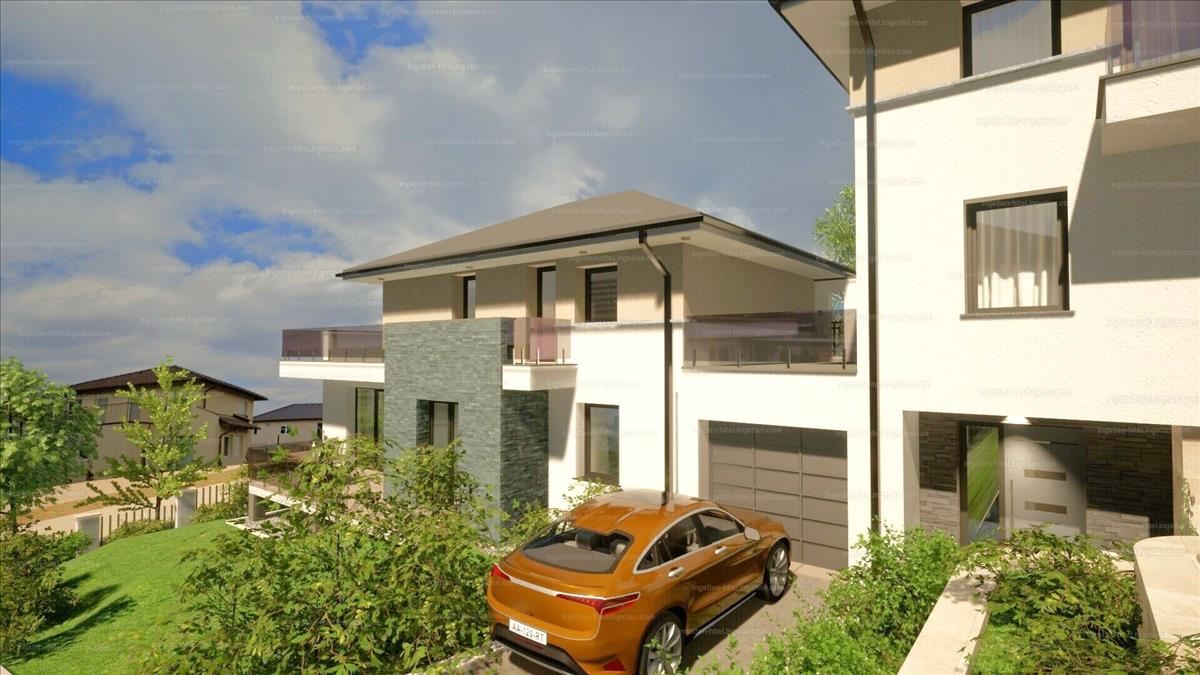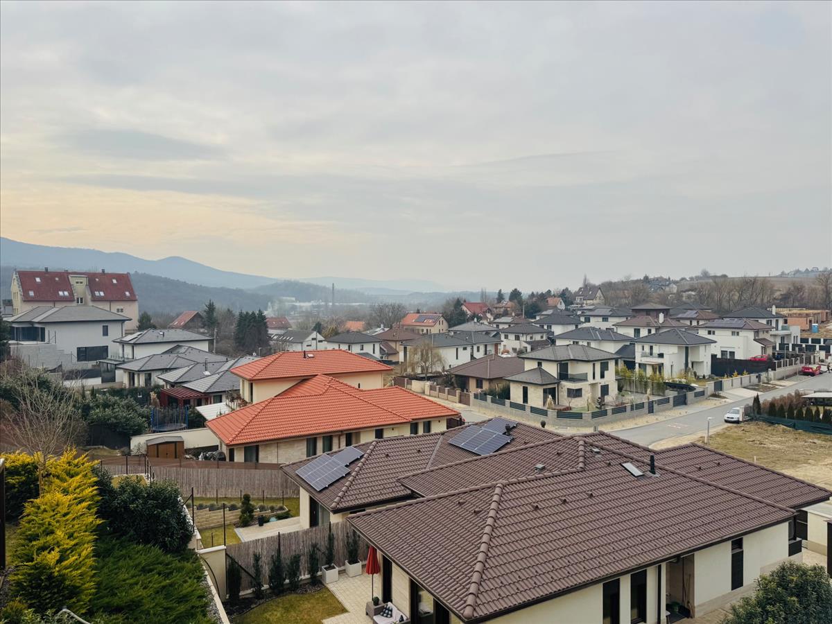 nettó 175 nm -es, 5 szobás ikerház fél, örök panorámás, dél-nyugati fekvésű, 450 nm -es saját telekkel.