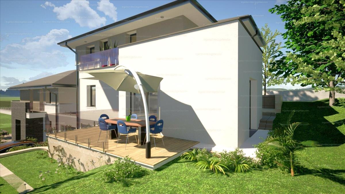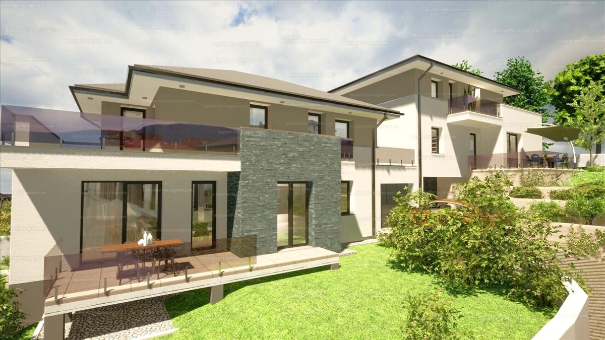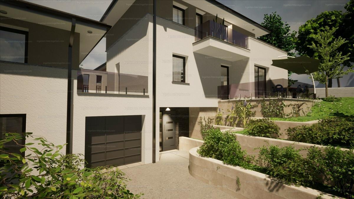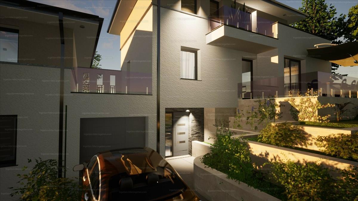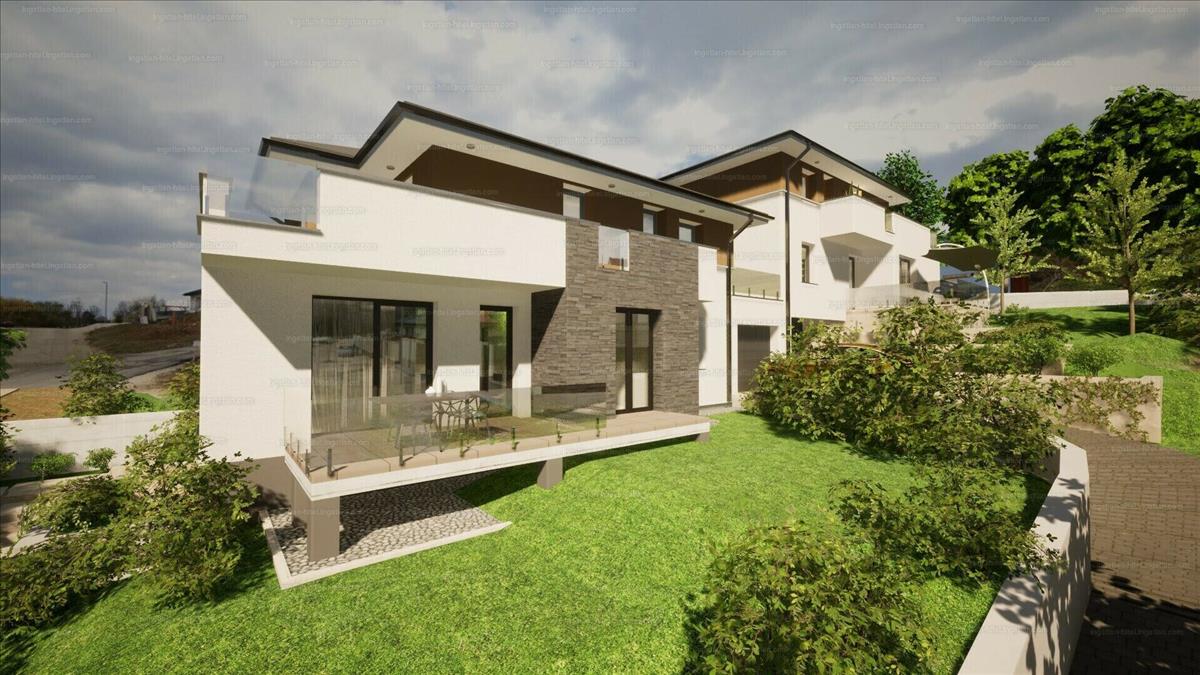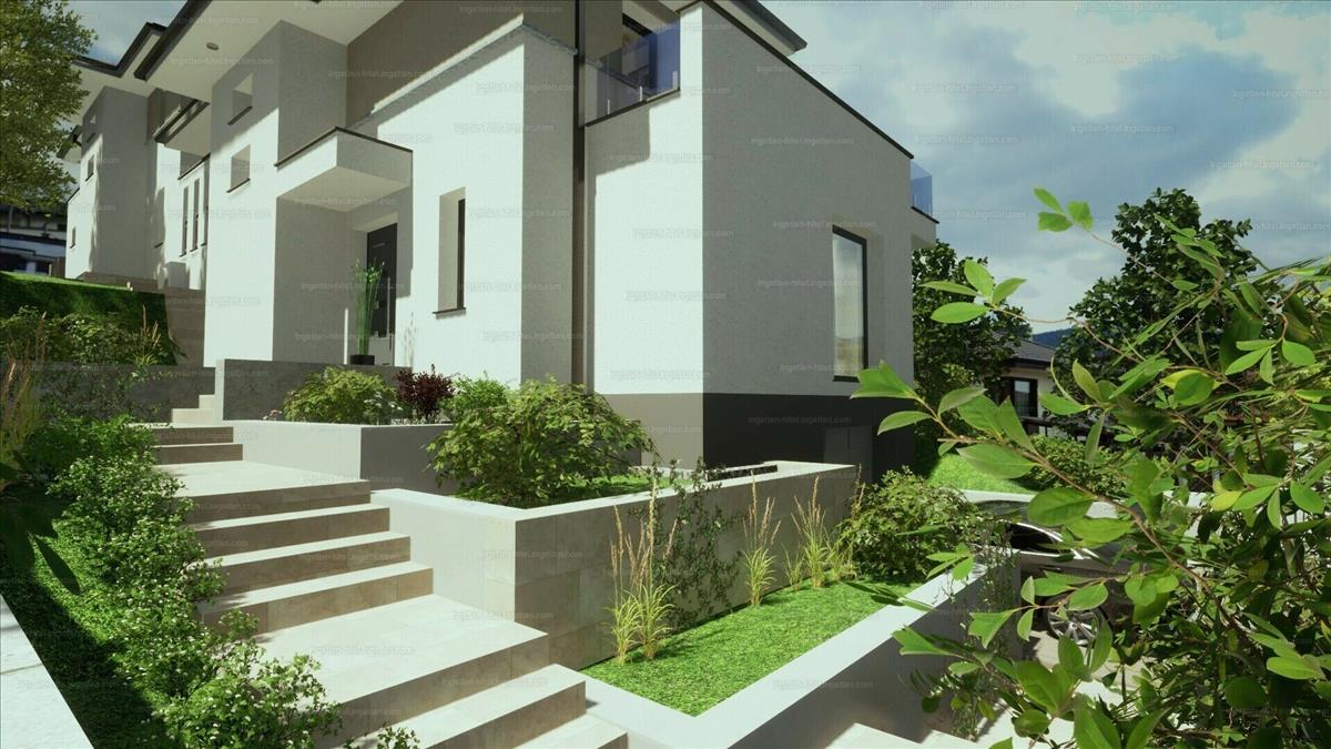 nettó 175 nm -es, 5 szobás ikerház fél, örök panorámás, dél-nyugati fekvésű, 450 nm -es saját telekkel.