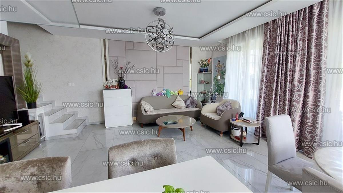 A 2017-ben épült, két szintes ikerház prémium anyaghasználattal és igényes burkolatokkal készült: