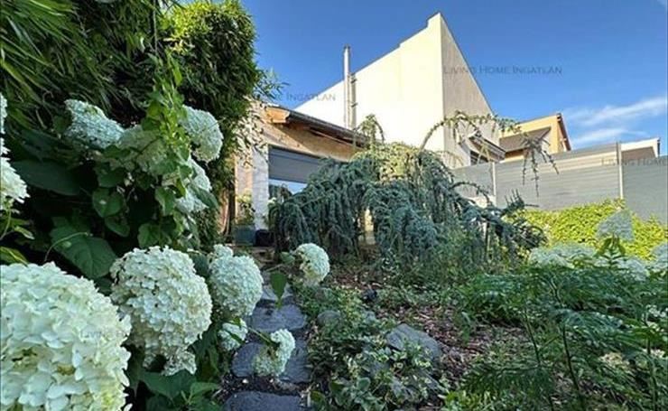 For sale a modern semi-detached house at the meeting point of the Pilis and the Buda Hills, in Üröm, on Rókahegy. The 440 sqm intimate garden with Mediterranean and other ornamental plants, rock garden, relaxing corner and large terrace complete the tranquility and recharging of this home.