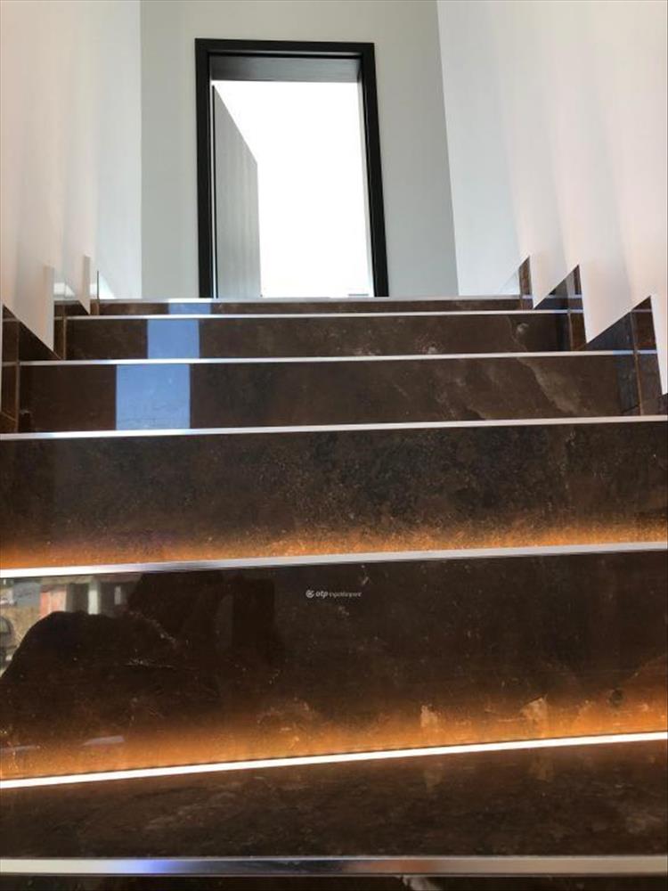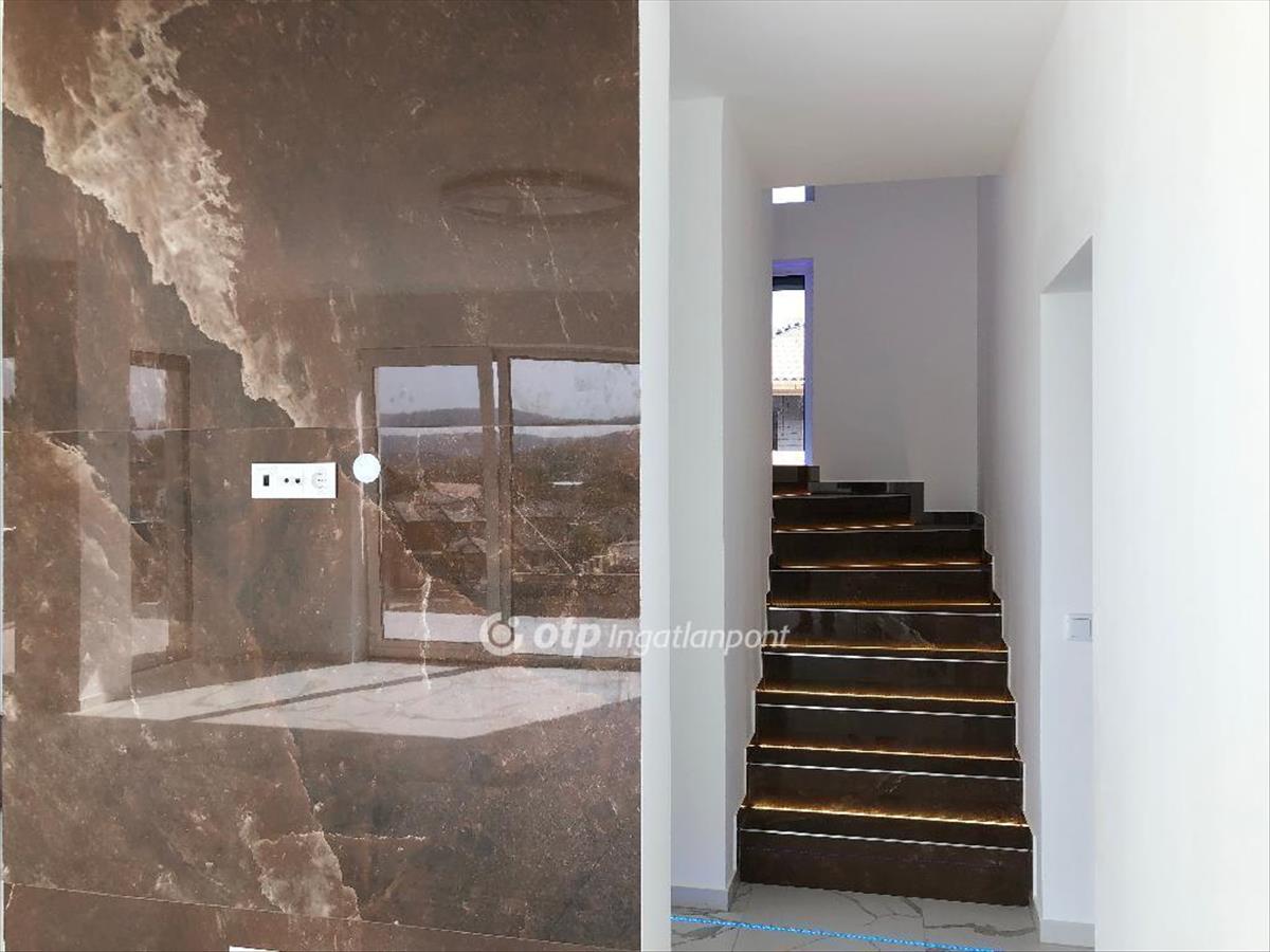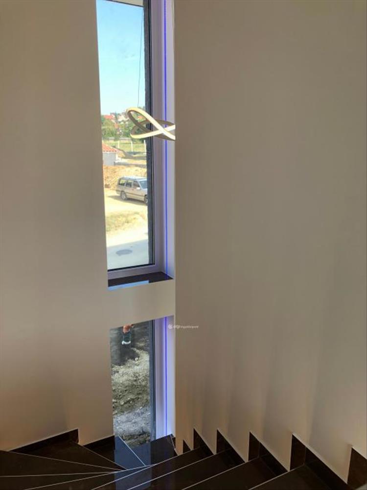 Ürömön, közel a III. kerülethez egy közkedvelt, jó területi adottságokkal rendelkező lakóparkban eladó egy modern, letisztult, elegáns és mégis barátságos és otthonos, hangulatvilágításokkal is ellátott 150 m2-es (tulajdoni lapon 144 m2-es), 450 m2-es telken fekvő, Nappali + 4 szobás, Déli tájolású, jó elrendezésű, tágas helykínálattal rendelkező ikerházfél. Az ingatlan egy kivételes adottságú telken található, nincs besüllyesztve a környező épületek közé, sokkal szellősebb és valóban van térérzet. Továbbá csodás kilátás is jellemzi amelyet minden erkélyről és teraszról lehet élvezni, már a földszinti terasz is panorámás. Az épület jól elszeparáltan épült, egyedüli kapcsolódási pont az ikerfélhez az a garázs, de az is szeparált, külön bejáratú, tehát egymás zavarása nélkül vagy áthallások nélkül telhetnek a mindennapok. Abszolút önálló házként funkcionál. Terasz és erkély összesen 4db található. a gondos tervezést szintén gondos és alapos kivitelezés jellemzi, az építés minősége és az épület műszaki tartalma kifogástalan, továbbá a felhasznált és beépített anyagok megjelenésére és minőségére sem lehet panasz. a felhasznált és beépített anyagok jellemzően Olasz és Spanyol minőségi termékek, többek között a 120x60 cm-es hidegburkolatok is. Az épület teljes egészében valóban Okos Otthon, mindent digitálisan és távolról is lehet vezérelni, a fűtést és a hűtést, riasztót, redőnyöket és a belső szellőztetést is. Az ingatlan sajátossága, hogy szükség esetén nem kell szellőztetni, mivel a teljes épületet behálózó szellőztető-keringetőrendszer gondoskodik arról, hogy mindig friss legyen a levegő odabent, ne párásodjon az épület és por se kerüljön a lakótérbe. Központi porszívórendszer is kiépítésre került. a külső és a belső nyílászárók is magas minőséget képviselnek. Energetikai besorolása a legmagasabb kategóriájú. a garázsból természetesen közvetlenül be lehet jutni az épületbe. a garázs előtt is van még további parkolási lehetőség. a nyílászárók elektromos redőnnyel és szúnyoghálóval felszereltek természetesen. Az ár tartalmazza a komplett Bosch gépekkel felszerelt konyhát és a berendezett fürdőszobát is. Fűtése hőszivattyúval megoldott, a hőleadás formája padlófűtés. Az ingatlan 1 hónapon belül költözhető. Elhelyezkedésének köszönhetően könnyen megközelíthető, a tömegközlekedés is 5 perces sétatávolságra található.