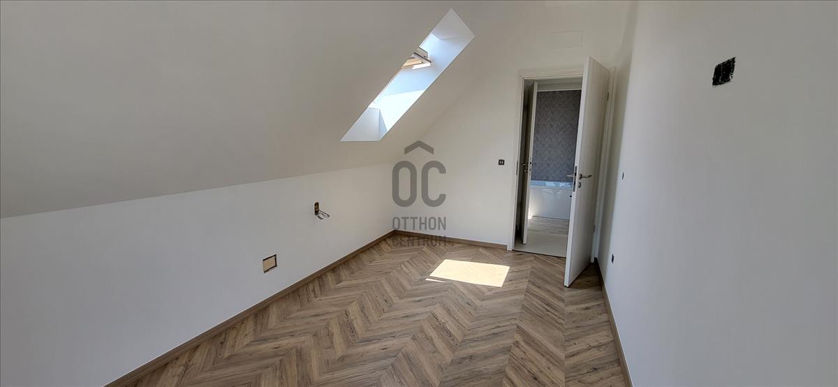 A tetőtérben két háló, fürdő, +WC, és egy gardrób található.