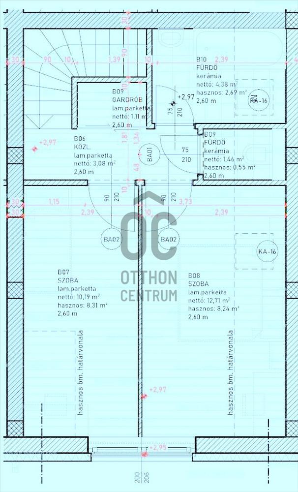 - 73 Nm-es. Földszinten konyha-étkező, kertkapcsolatos nappali, tároló, fürdő+WC. Tetőtérben 2 háló, közlekedő, fürdő+WC.
