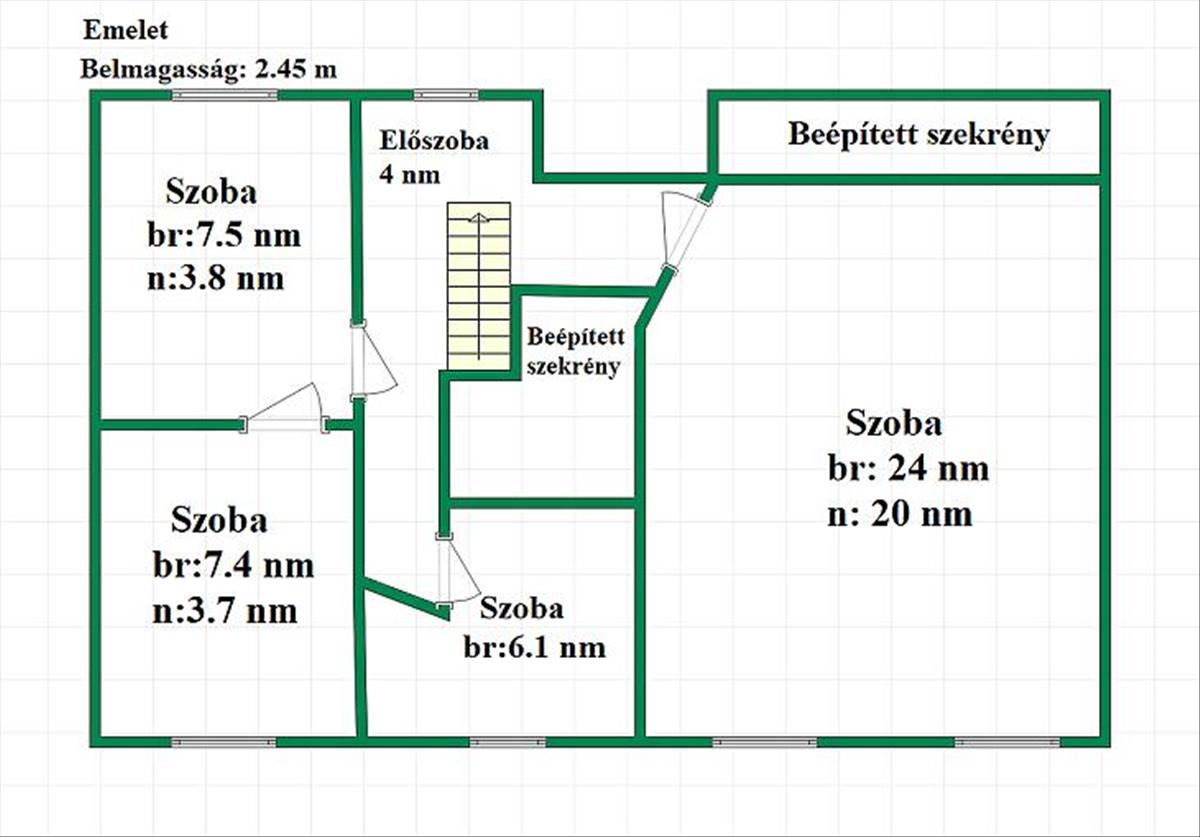 Az emeleti szint felújításon esett át, továbbá rengeteg beépített szekrénnyel rendelkezik, így bő tárolási lehetőséget nyújt.