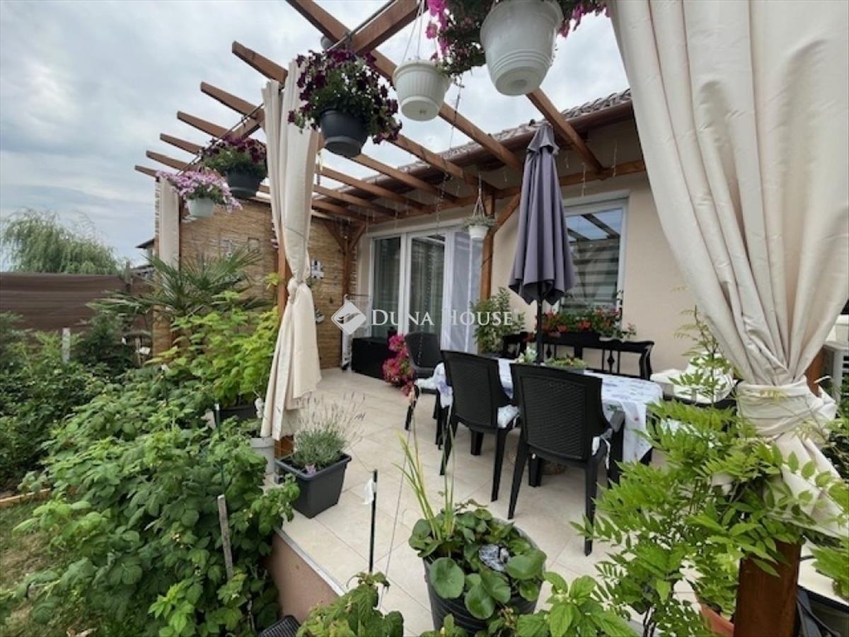 Eladó Vácrátót csendes, erdőközeli részén egy pompás mediterrán jellegű családi ikerház fél! Az ingatlan 2023-ban épült, 560 nm -es telken helyezkedik el, maga a ház 77, 32 nm hasznos alapterületű, melyhez tartozik egy pergolával ellátott 15, 45 nm -es terasz, illetve parkosított, térkövezett udvar. Az ingatlanban 3 hálószoba, 2 fürdő helyiség és egy nagy amerikai konyhás nappali + étkező került kialakításra, mely kiváló elosztású, udvarra néző. a ház fűtése H tarifás rendszerre kiépített Midea hőszivattyúról biztosított, minden helyiségben padlófűtés található. Ezen felül kiépítésre került a nappaliban klíma is. Az ingatlan téglából épült 5 cm-es grafit szigeteléssel borított. a biztonságot beépített riasztó rendszer biztosítja a ház lakói számára. a község infrastruktúrája minden korosztály számára megfelelő, orvosi rendelők, posta, kisebb élelmiszerbolt, iskola, óvoda, bölcsőde, gyógyszertár mind megtalálhatóak. Budapest autóval és volánbusszal is egy órán belül elérhető. Nagyobb bevásárlási lehetőség a közeli Gödöllőn vagy Vácon lehetséges. Vácrátót a budapesti agglomeráció észak-keleti szélén fekszik a Gödöllői-dombság északi részén. a falun három patak folyik keresztül, a Tece-, a Sződ-Rákos- és a Hartyán-patak, valamint a község központjában található a híres, nevezetes Nemzeti Botanikus kert is csodás élővilágával, mely az év különböző szakaszaiban különleges programokat kínál. További információkért, megtekintésért, keressen bizalommal a hét bármely napján, bármikor! Ne habozzon, jöjjön el és nézzük meg együtt leendő otthonát! FIX 3% lakáshitelre megvehető