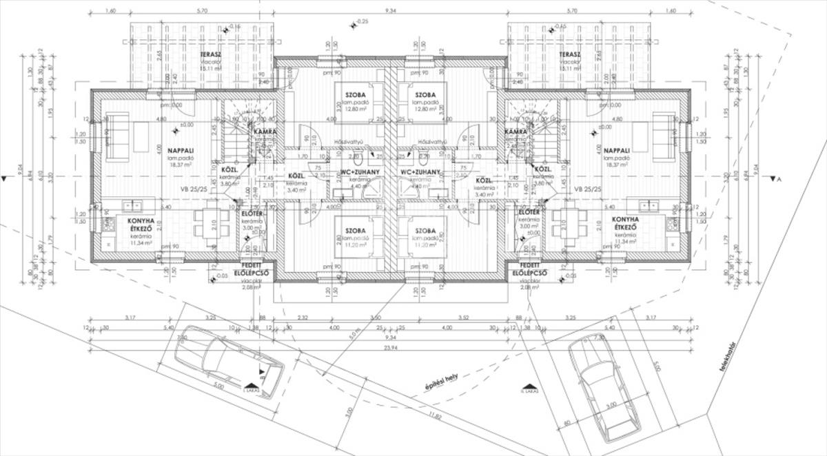 The cold and warm tiling, the windows (size, shape), the front door are optional, the colouring of the house and the fence can be completely customized. The internal partition walls can be moved during the construction.