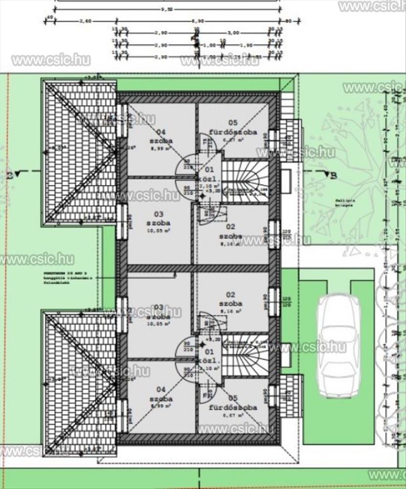 Vácrátóton eladó egy új építésű, kétszintes, bruttó 95 nm-s, 1+4 szobás ikerház fél, 420 nm-s telken 15 nm-s teraszokkal.