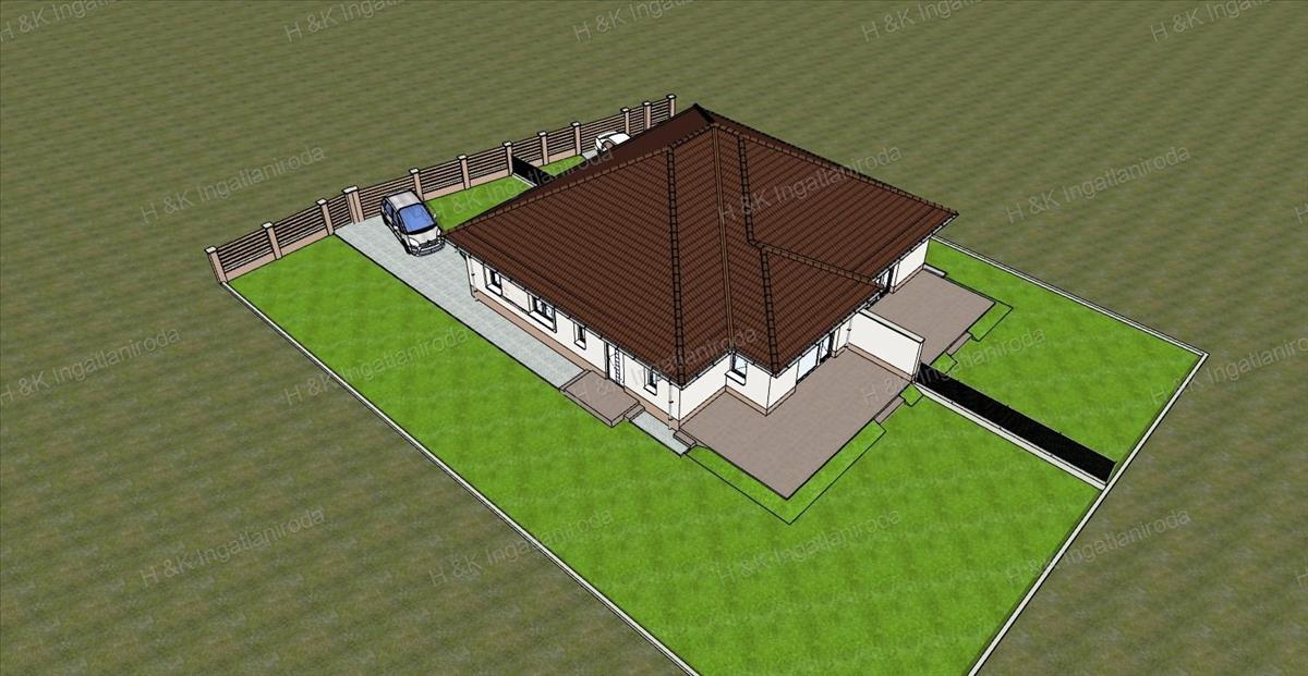 A kocsi beálló (3 x 5 m) és a járda (1 m széles) ami a kocsibejárótól a bejárati ajtóig vezet betonsáv lesz.