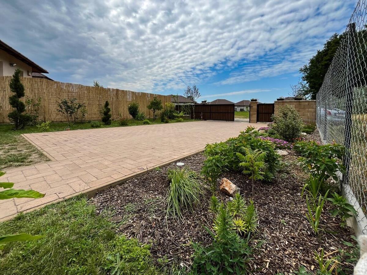 A ház egy 997 m²-es törzstelken áll, amelyből a használati megosztás alapján ehhez a lakáshoz kb. 550 M²-es, kerítéssel leválasztott, kizárólagos használatú kertrész tartozik. Ez a gyakorlatban valóban nagy kertet jelent, nem csak egy marketingcélú számot.
