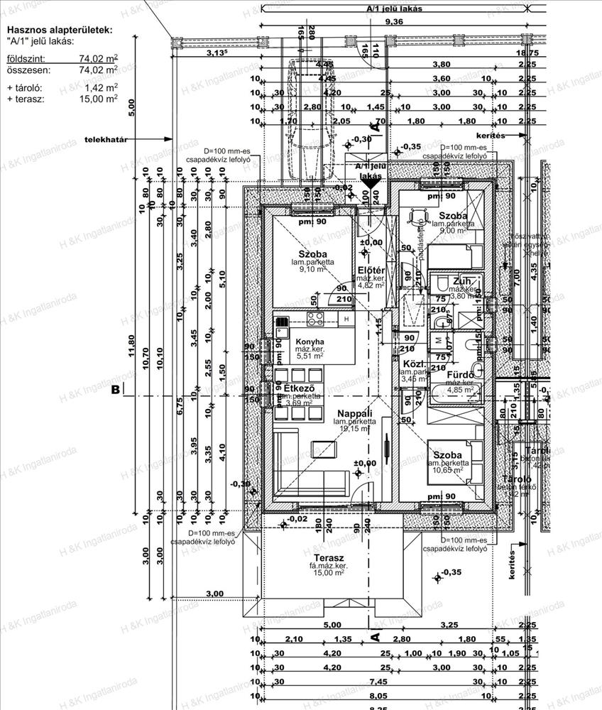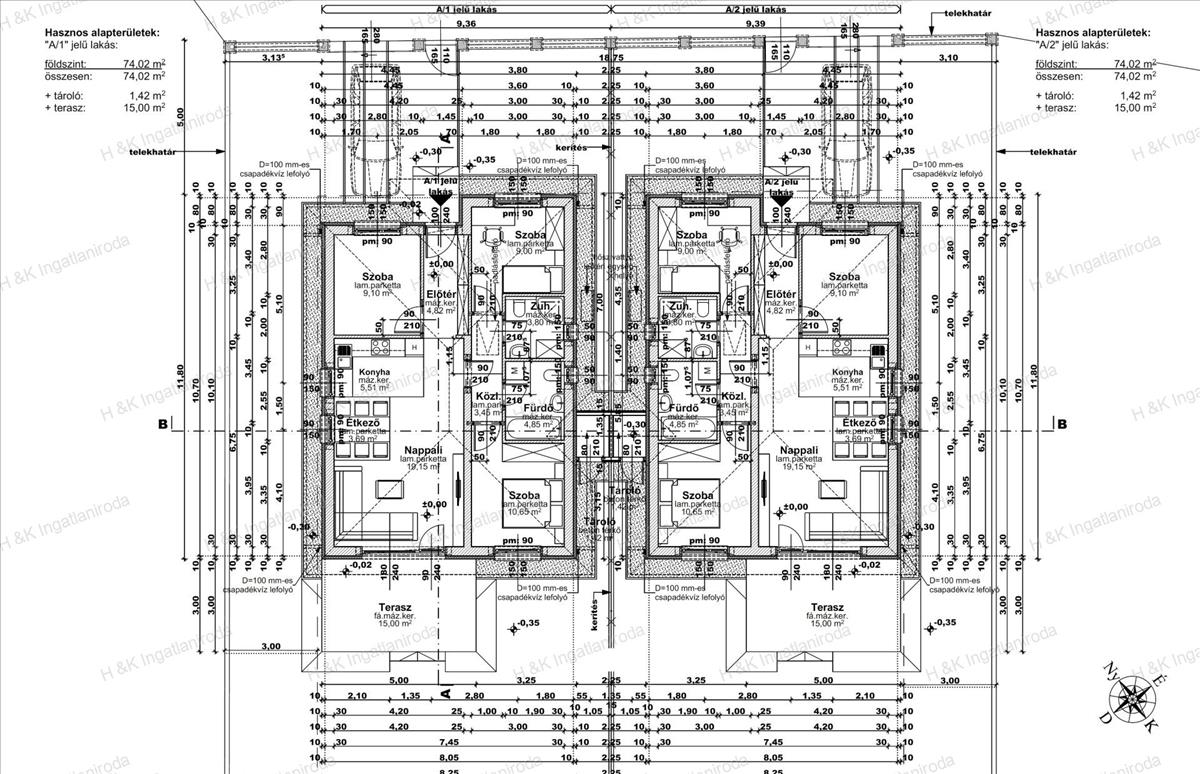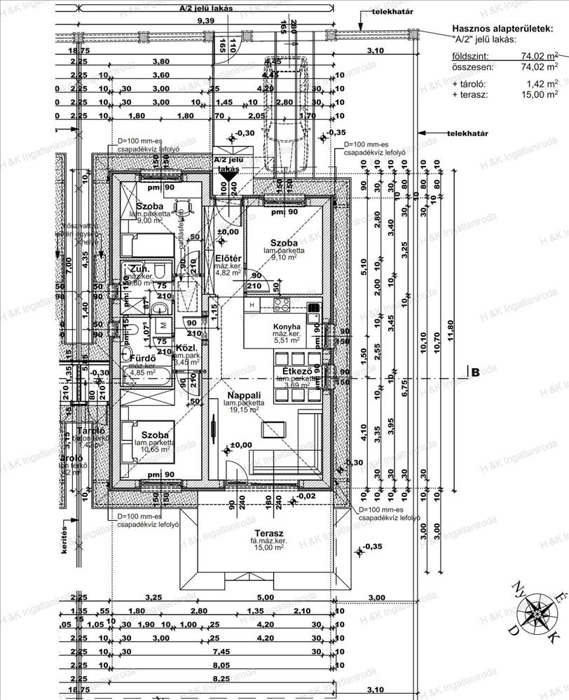 A lakások 74 nm -es lakóterülettel rendelkeznek + 15 nm terasz + 1, 42 nm külső tároló, amerikai-konyhás nappali + 3 szobával, dupla-komfortos elrendezéssel, 381 nm -es saját telekrészekkel.