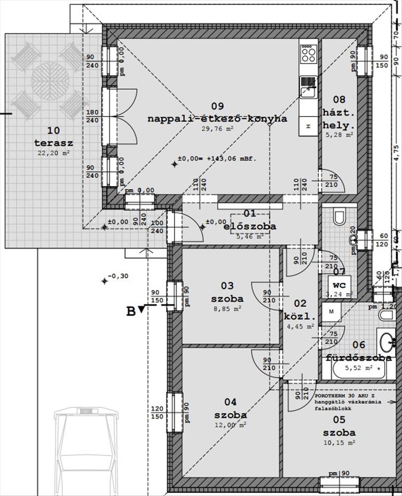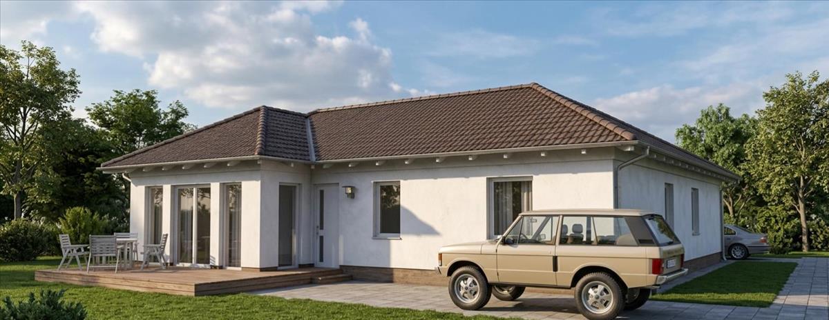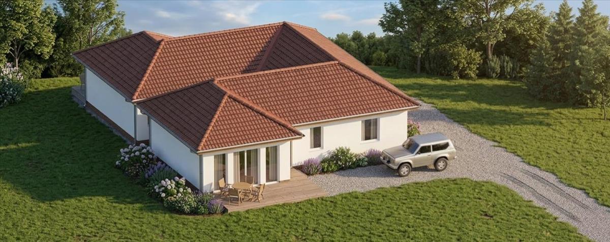 A földszintes házban amerikai konyhás nappali+3 hálószoba, fürdőszoba, külön mellékhelyiség kerül kialakításra. a nappaliból egy 20 nm -es terasz nyílik.