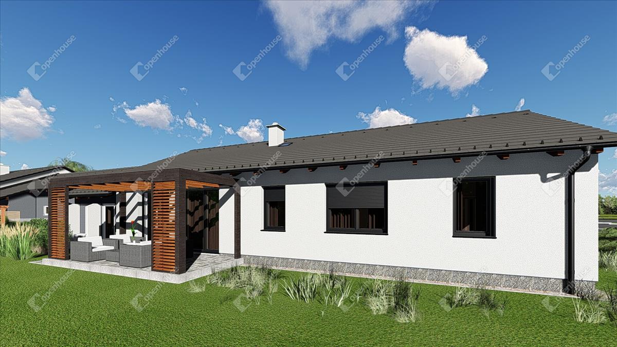Alapterület: 113 m² telek 861 m². Az ingatlan kiváló minőségű anyagokból a mai elvárásoknak megfelelően kerül kivitelezésre. a fűtés-hűtés és a melegvíz hőszivattyúval valósul meg. Fehér műanyag ablakok 5 és 6 légkamrás kivitelben, rejtett redőnydobozzal, lábakkal és szúnyogháló előkészítéssel.