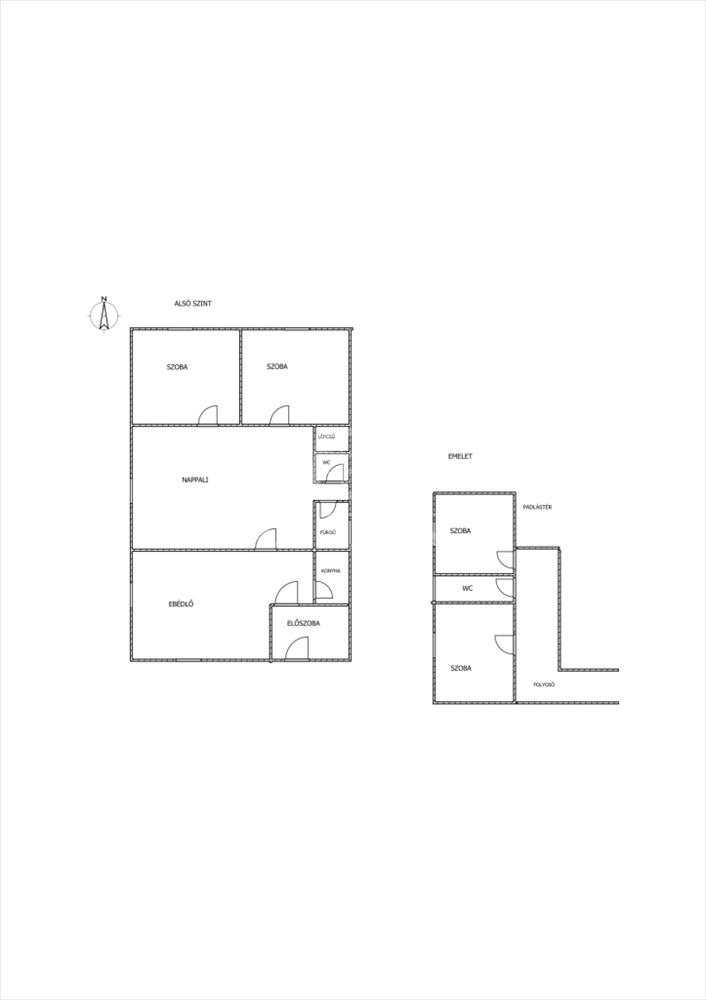 Felső szint: 2 külön nyíló szoba, külön WC