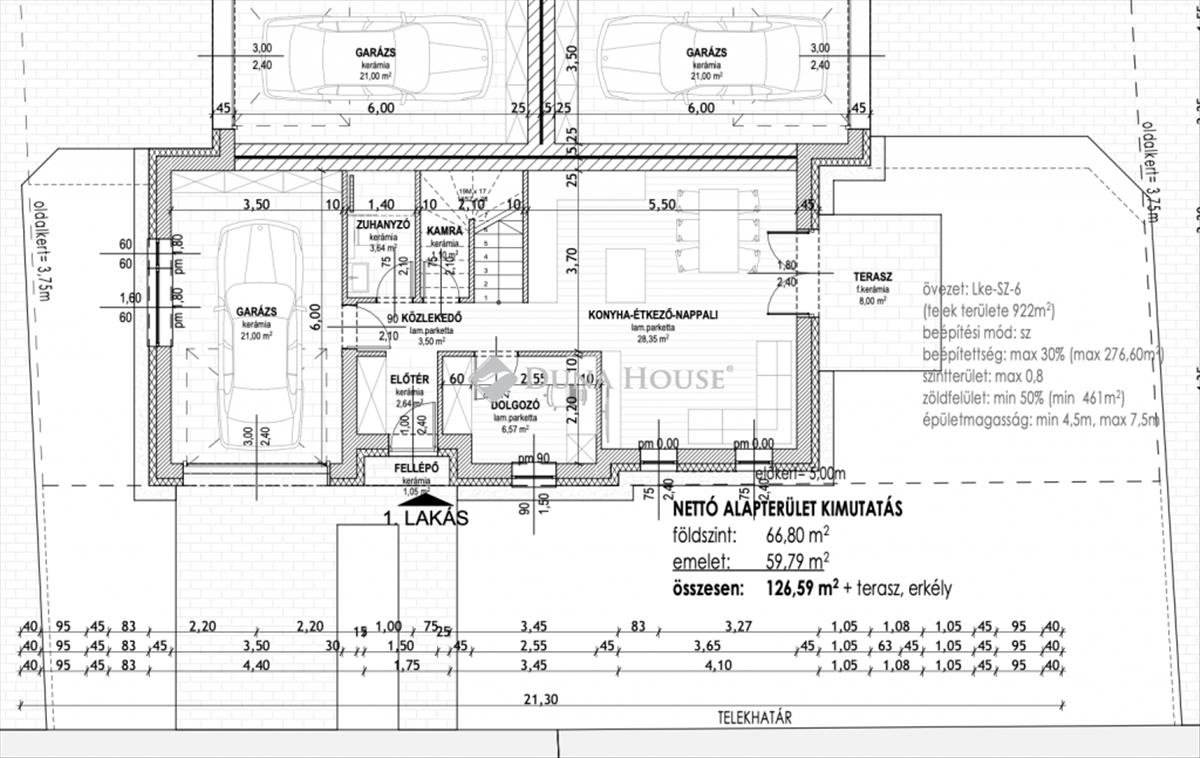 Nappali+3hálószoba+gardrób, 21nm garázs, szülőiháló.