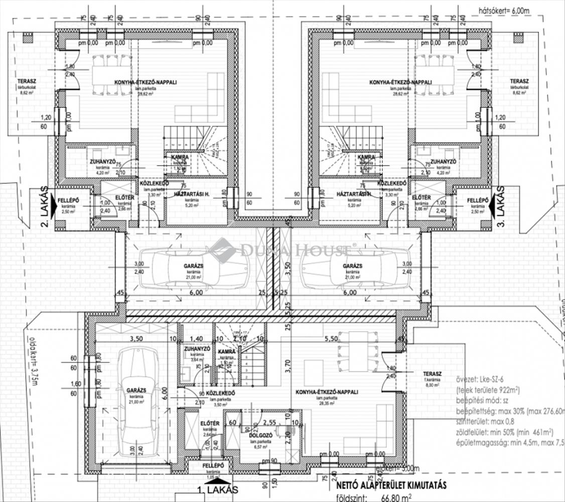 Nappali+3hálószoba+gardrób, 21nm garázs, szülőiháló.