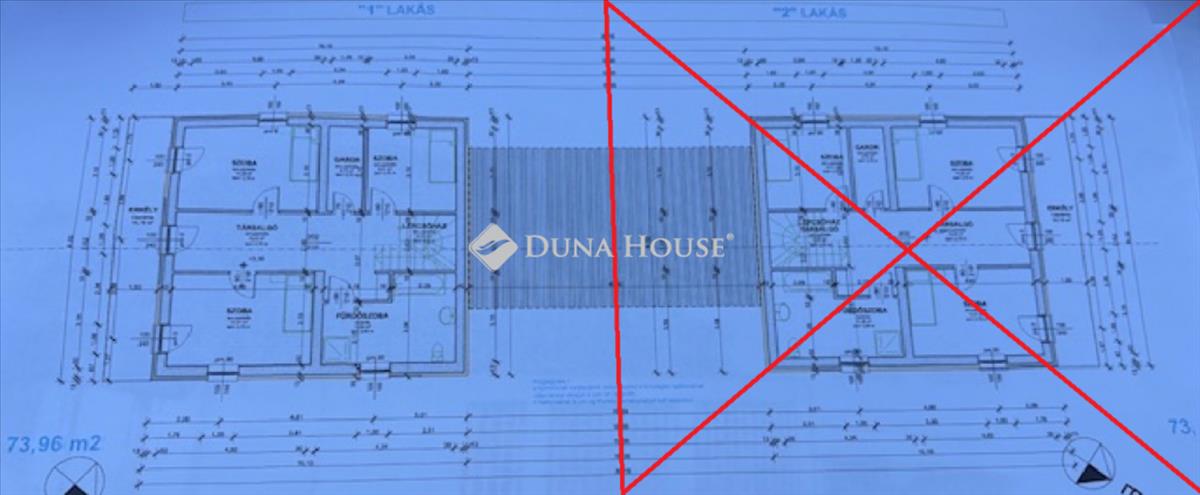 802Nm-es összközműves telken kapott helyet egy két lakásos ikerház, amelyek az igényesen kialakított garázsok hátsó főfalaival kerültek össze építésre.