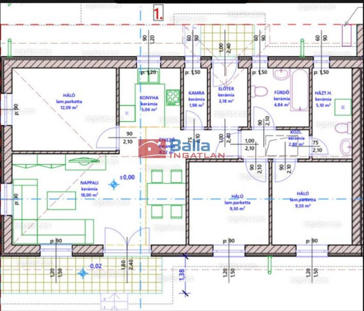 Energiatakarékos: padlófűtés - 10 Kw-os hőszivattyú + 12 cm modern szigetelés + 30 cm födémszigetelés + műanyag hangszigetelt nyílászárók és falazatok, fürdőszobában + törölköző szárítós radiátor.