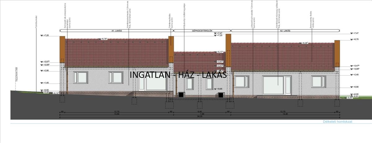 A1 hátrész kisebb telekkel (110 m Ft) a a2 házrész nagyobb telekkel rendelkezik (120m Ft)