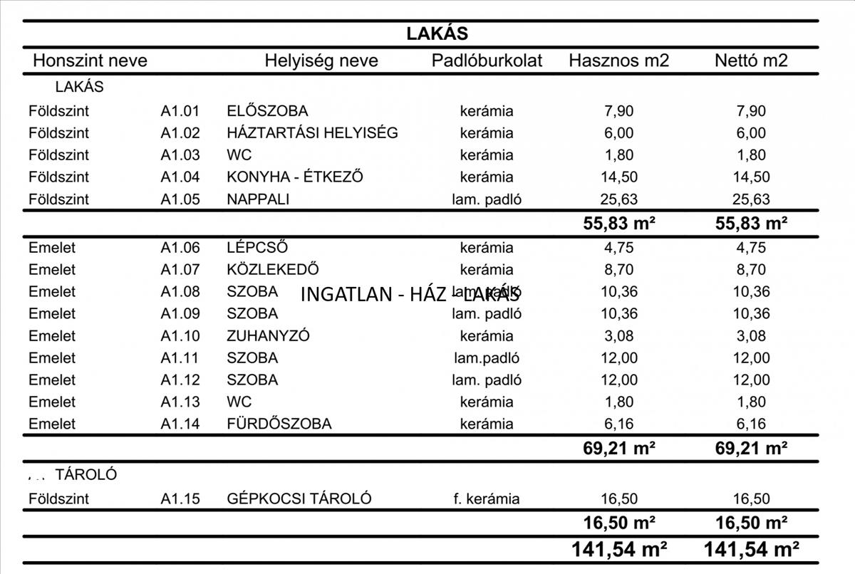 Nettó alapterület: 142 m² (garázzsal)