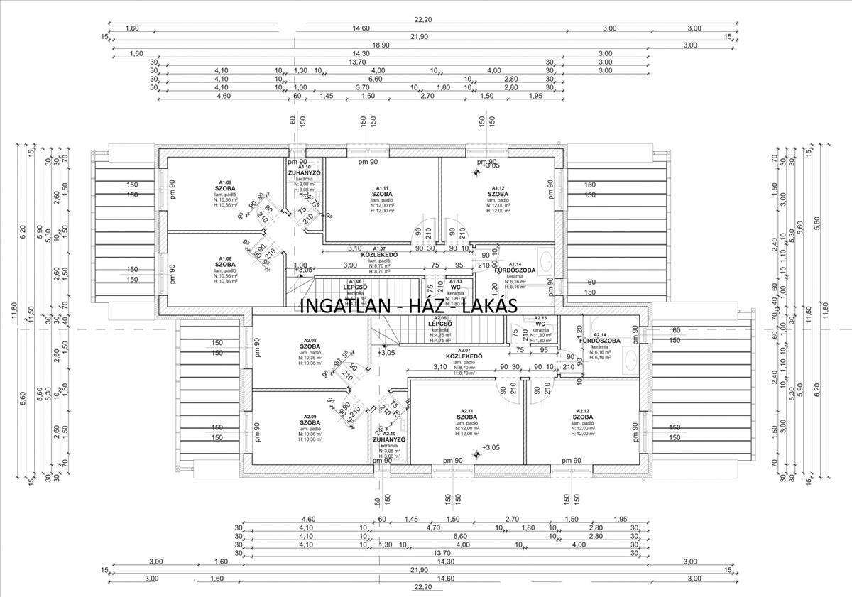 •4 db szoba: 12 + 12 + 10, 36 + 10, 36 m²