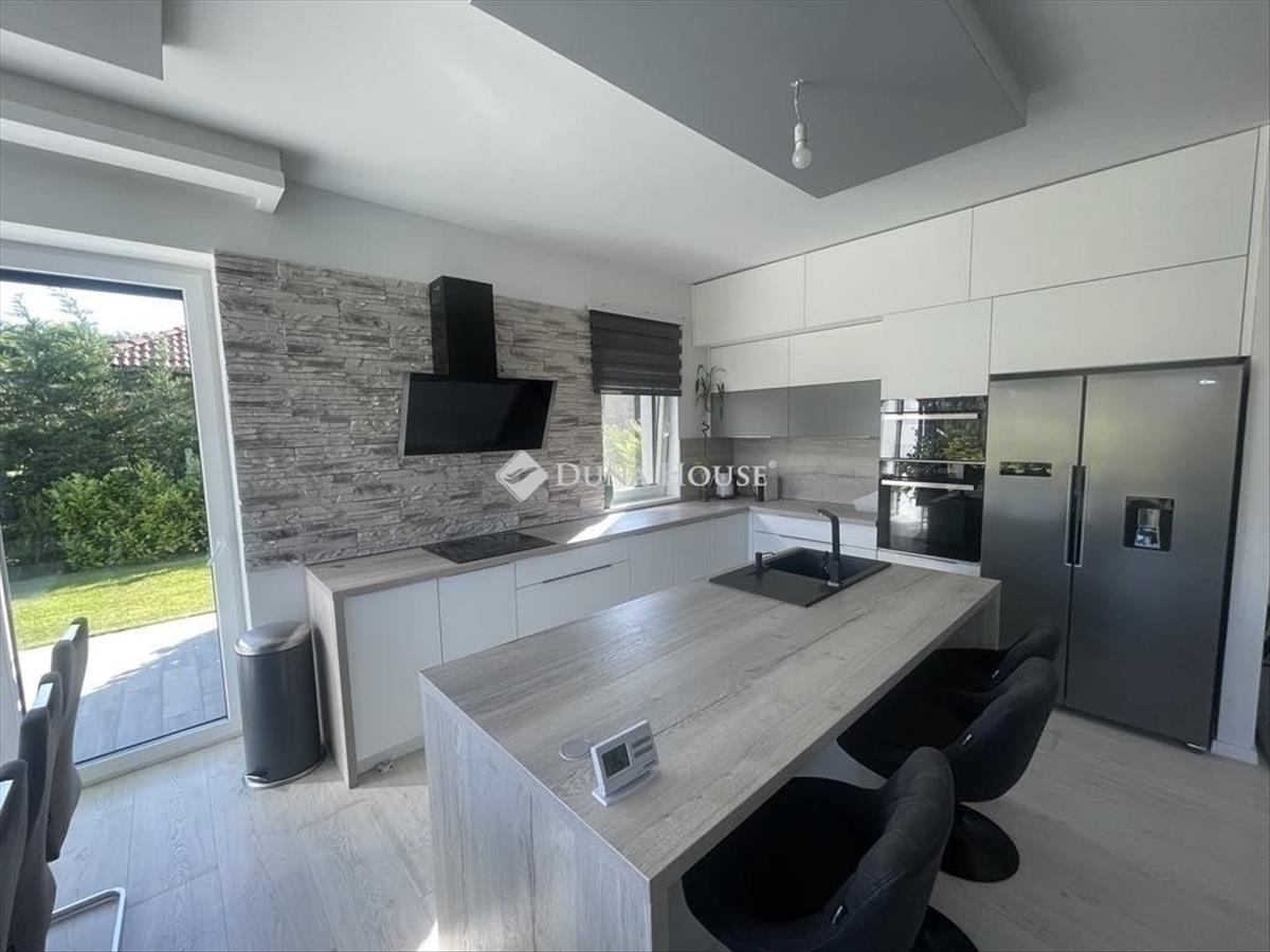 Eladó Veresegyház Ligetek városrészén egy két szintes, nettó 170 m²-es, 4+1 szobás, igényesen kivitelezett ikerház, hatalmas alsó terasszal és teljes berendezéssel. a ház minőségi, prémium anyagokkal épült és lett felszerelve azonnal költözhető, ide már csak a bőrönd kell.