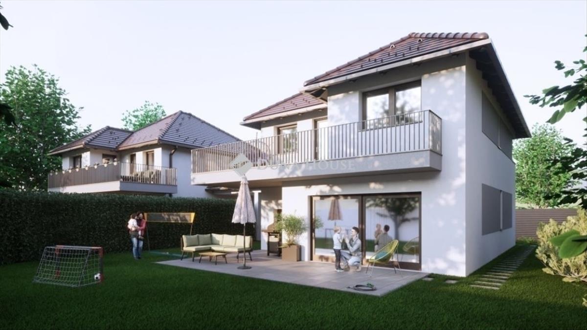 Egy nettó 149nm -es nappali + 4 szoba, + fedett és fedetlen teraszok, + garázs, dél-nyugati tájolású, duplakomfortos, tégla építésű iker ház (a két háznak nincs közös falszerkezete), 450nm -es telken. a beruházó referencia munkái akár személyesen, akár digitális formában is megtekinthető.