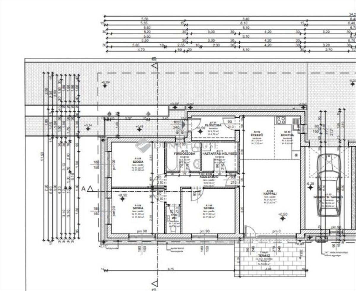 Az ingatlan 90, 5 m² hasznos alapterületű, elrendezése praktikus és jól átgondolt: amerikai konyhás nappali, 3 külön nyíló szoba, fürdőszoba, külön wc, közlekedő és háztartási helyiség biztosítja a kényelmes mindennapokat. a nappaliból közvetlen kapcsolat nyílik a teraszra, továbbá garázs is tartozik az ingatlanhoz.