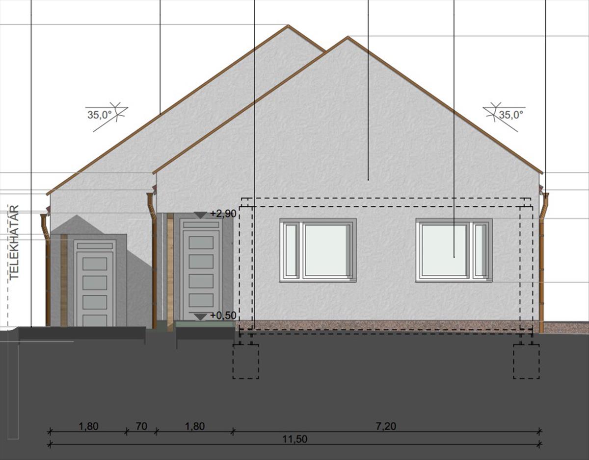 Műszaki tartalomból: 30 cm-es Porotherm tégla falazattal+12 cm grafitos dryvit szigeteléssel készül.