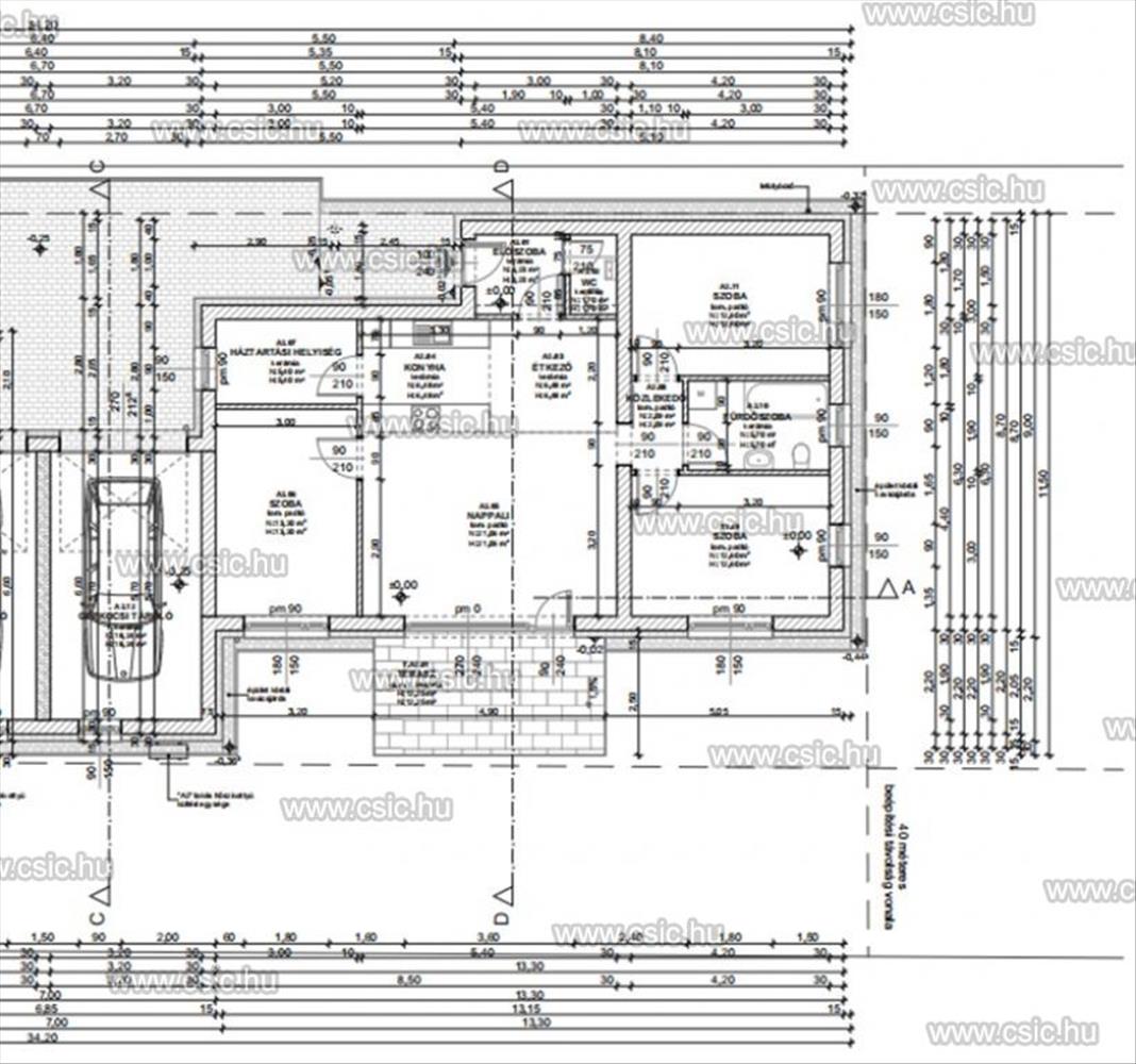 NAPPALI + 3 hálószoba, fürdőszoba, háztartási helyiség, külön wc, előszoba, élhető terasz, garázs, és 650 nm Saját KERT!