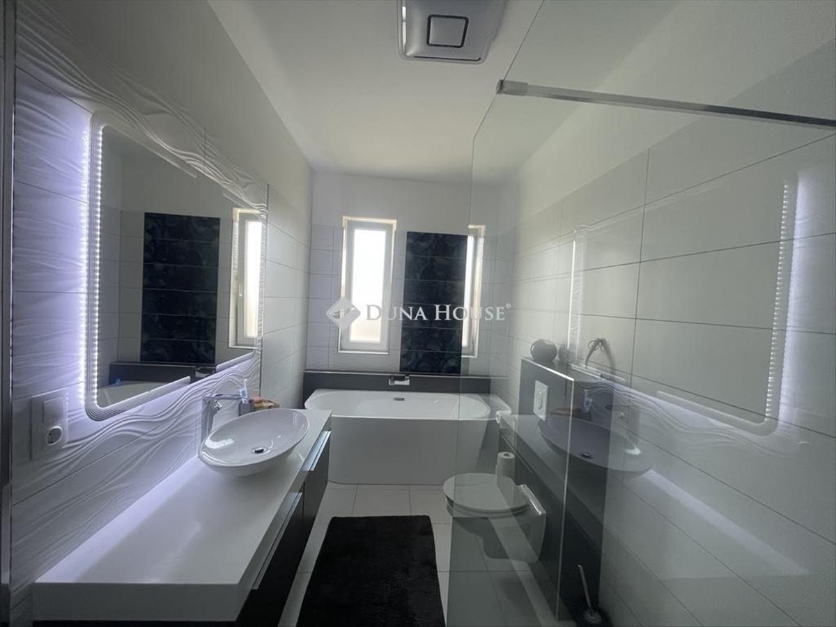Eladó prémium ikerház Veresegyház legkedveltebb részén, a Ligetekben! Eladó Veresegyház Ligetek városrészén egy két szintes, nettó 170 m²-es, 4+1 szobás, igényesen kivitelezett ikerház, hatalmas alsó terasszal és teljes berendezéssel. a ház minőségi, prémium anyagokkal épült és lett felszerelve azonnal költözhető, ide már csak a bőrönd kell. Földszint: funkcionális és reprezentatív térAmerikai konyhás nappali (beépített, modern konyhabútor Whirlpool 6th Sense gépekkel, a vételár részét képezik)VendégszobaFürdőszoba minőségi burkolatokkal (üveg dekorcsempe, Hansgrohe falsík alatti szerelvények)KamraKözvetlen kijárat a hatalmas napos teraszraEmelet:privát, kényelmes lakótér3 hálószoba, mindegyik világos és jól bútorozhatóEgyik szoba panorámás üvegezéssel, természetközeli élmény minden reggelKét terasz (kiváló reggelihez vagy esti pihenéshez)GardróbszobaFürdőszoba bútorasztalos által készített egyedi bútorokkal, igényes csempékkelMűszaki felszereltség és extrákGázkazános padlófűtésSplit klíma a földszinten, emeleten álmennyezetbe épített klíma3 rétegű, antracit színű Kömmerling nyílászárókDélnyugati tájolás napfényes, világos terek egész napMiért érdemes ezt választani? Ez az ingatlan ideális választás családosoknak, akik nem szeretnének kompromisszumot kötni sem az elhelyezkedés, sem a minőség, sem a kényelem terén. a Ligetek kertvárosias környezete biztonságos és rendezett, a közelben óvoda, iskola, bolt, tömegközlekedés elérhető. a ház teljes berendezéssel, kulcsrakészen eladó Hitel.hu - Hasonlítsa össze a bankok lakáshitel ajánlatait