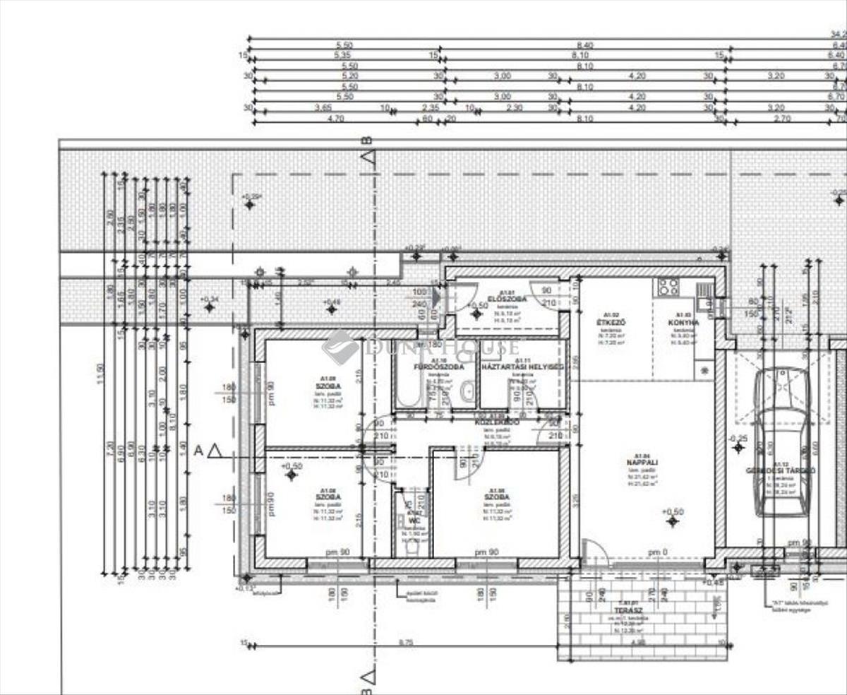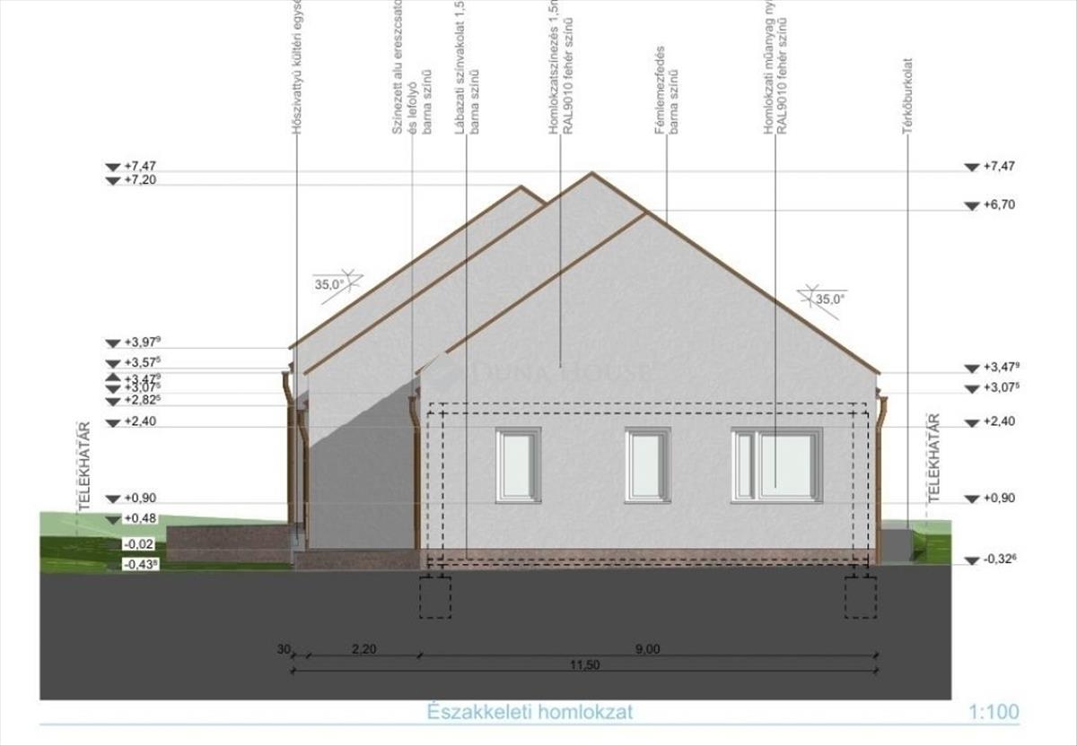 - Tetőszerkezet: hagyományos ácsolású, barna betoncseréppel ellátva. E jelű gerendás födém. (30 Fokos dőlésszög)