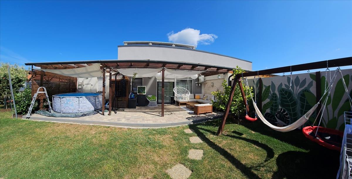 Képzeld el, ahogy egy nyári reggelen kilépsz a nappaliból a tágas, 37 m²-es fedett teraszra. a madarak csicseregnek, a kert zöldje nyugalmat áraszt, kezedben egy csésze kávé. Ez a pillanat a tiéd – és mostantól minden reggeled ilyen lehet.