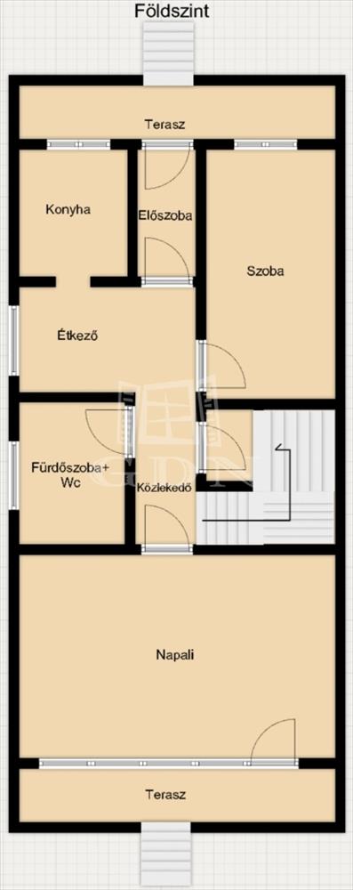- a házba az utcáról egy 6 m²-es teraszon keresztül lépünk be az előszobába.