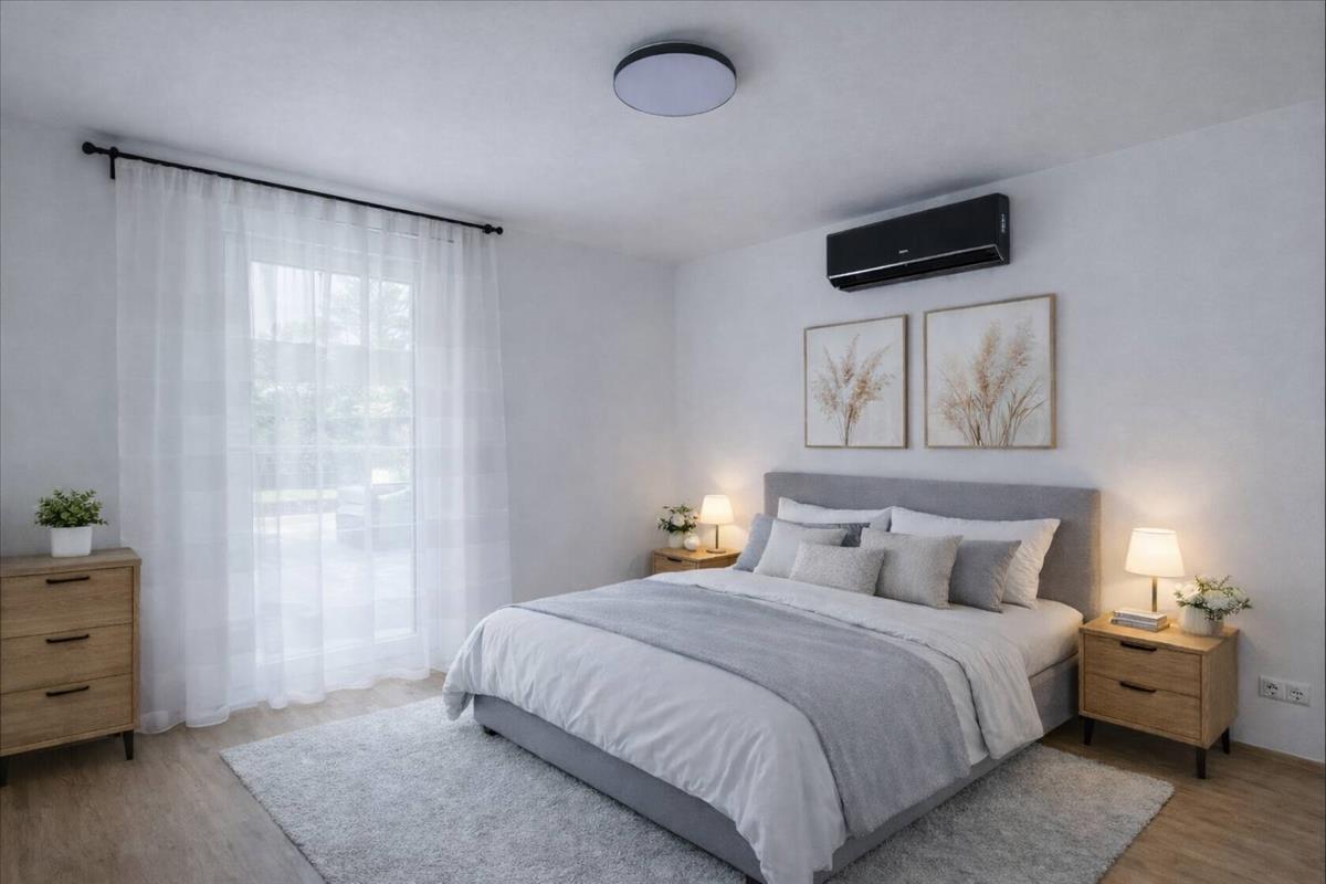 Magas műszaki tartalom: hőszigetelt épület, 3 rétegű nyílászárók, klímás fűtés-hűtés H tarifával, napelem, ikea konyha.