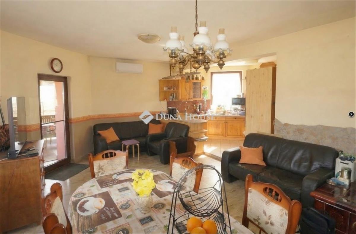 Az ingatlan a jelenlegi formáját 1996-ben nyerte el akkor lett hozzáépítéssel és a tetőtér beépítéssel bővítve az épület, mely egy része alatt pince is van. a ház lakóterébe egy szélfogón keresztül jutunk be, amiből jobbra lévő előszobából nyílik a 3 szoba, zuhanyzós fürdő és a külön wc. a bejárattól balra egy közel 40 nm -es amerikai konyhás nappaliba jutunk, ami tágas teret biztosít a család számára a közös időtöltésre, jó idő esetén pedig a nappaliból nyíló fedett terasz is rendelkezésre áll. a tetőtérben egy erkélyes szoba, és fürdőszoba található. a ház sokféle lehetőséget rejt magában, amit a leendő tulajdonos igényei szerint alakíthat, és akár több generáció számára ideális otthont biztosít. Igény esetén a földszinten még egy különbejáratú szoba kialakítható a 22, 5 m²-es szoba kettéosztásával.