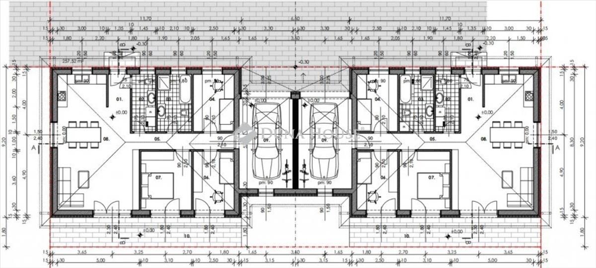 Az ikerfeleket hangszigetelő téglafal, és a garázsok is szeparálják egymástól, minden a legújabb energetikai elvárásoknak megfelelően kerül kivitelezésre.