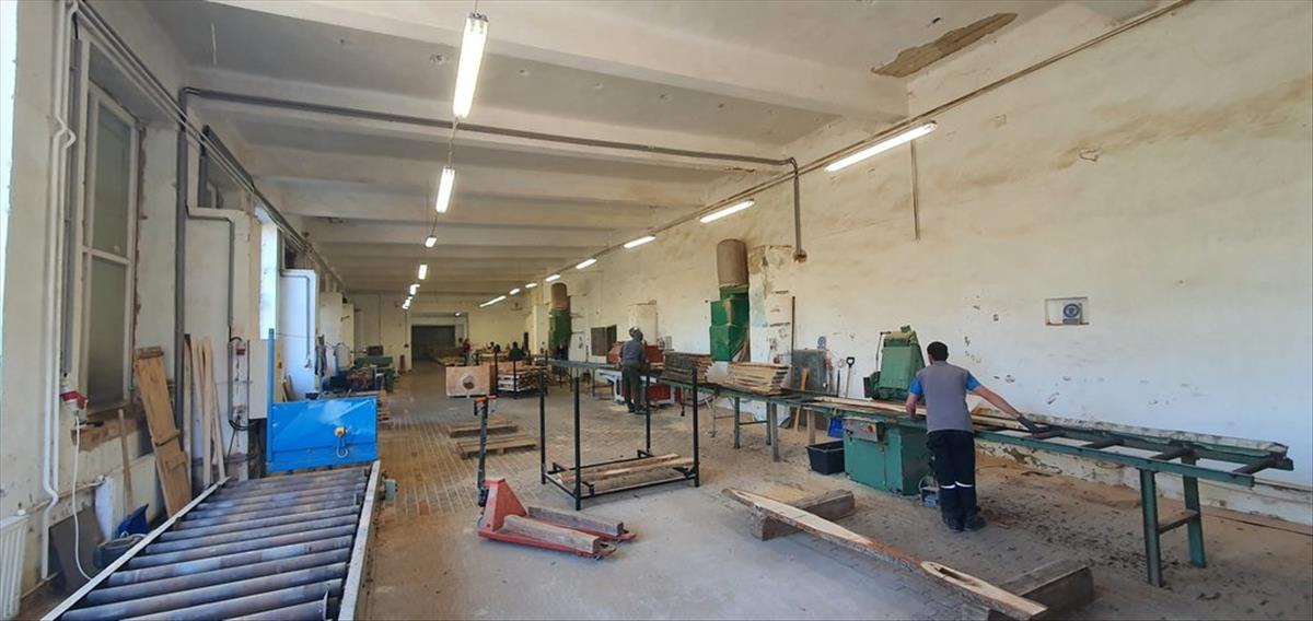 Átalakított fűrészüzem: Tároló (85, 11 m2), Raklap gyártó (80, 45 m2), Fahasító (209, 17 m2), Raktár (16, 47 m2), Raktár (29, 12 m2). . . Ezen felül Parkoló (246 m2)